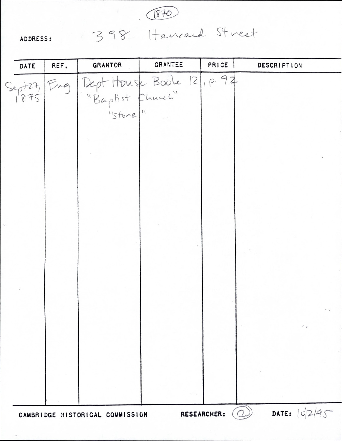 398 Harvard St - Old Cambridge Baptist Church - Research Form