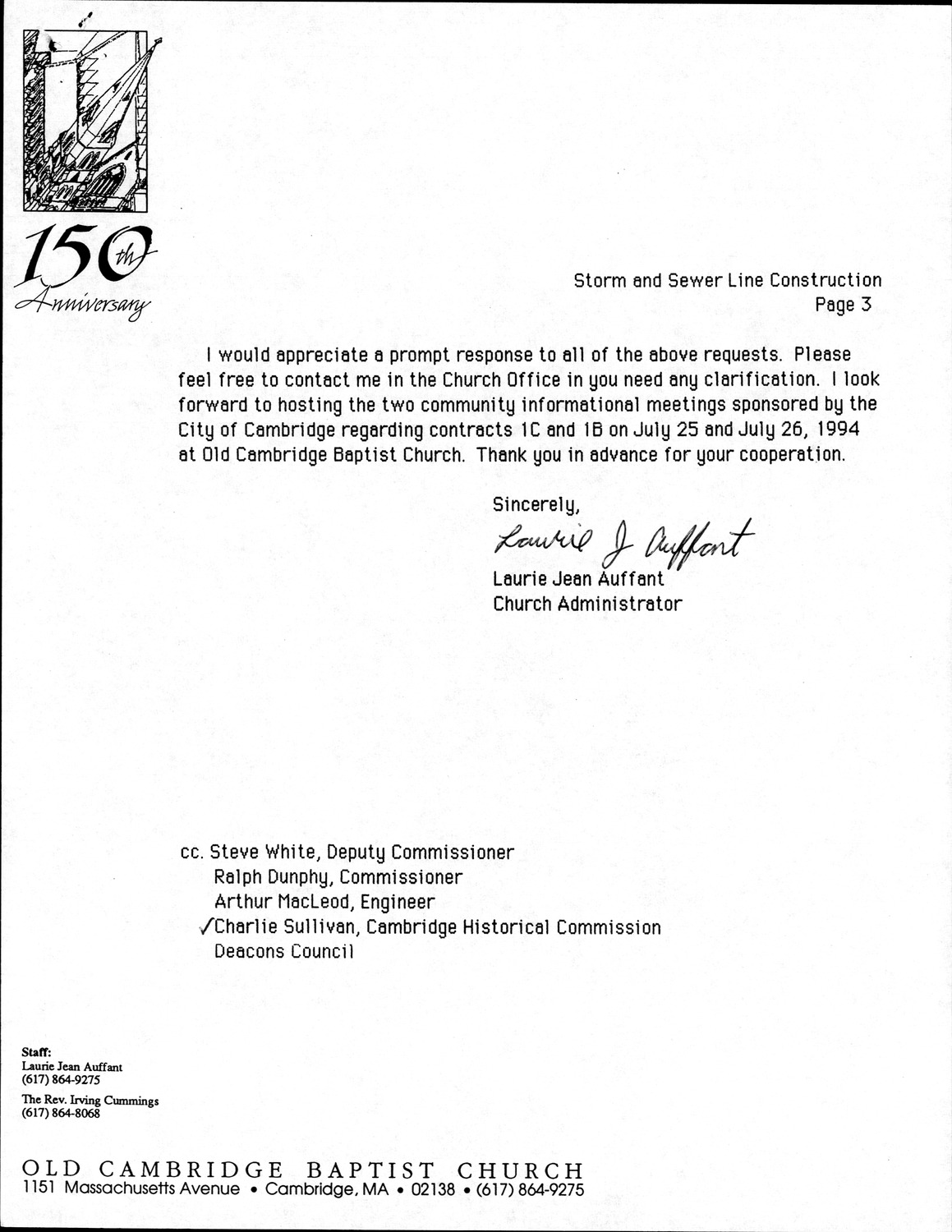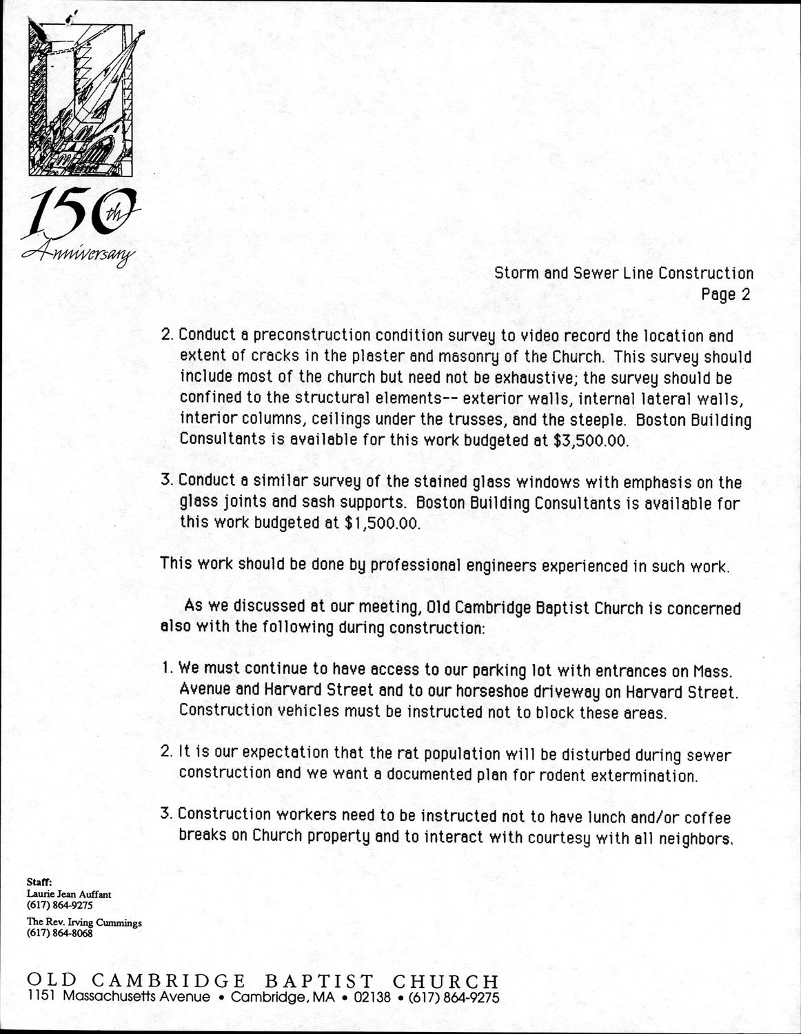 398 Harvard St - Old Cambridge Baptist Church - Correspondence