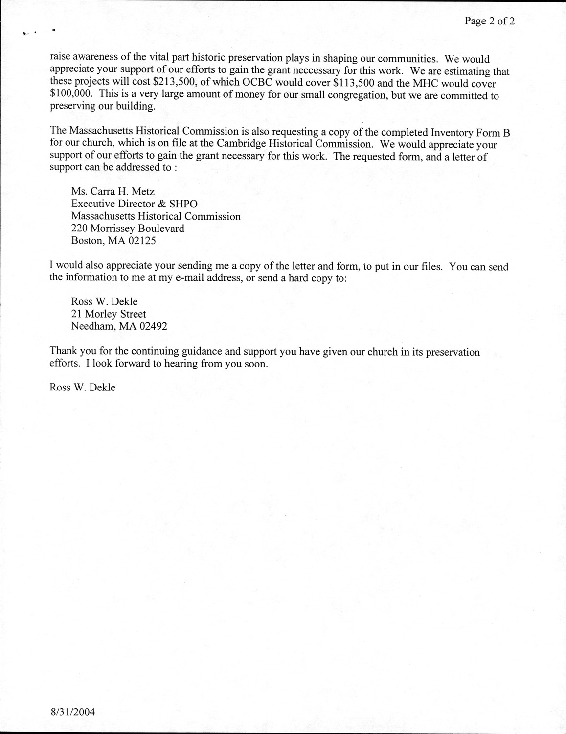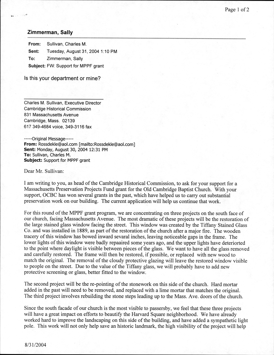 398 Harvard St - Old Cambridge Baptist Church - Correspondence