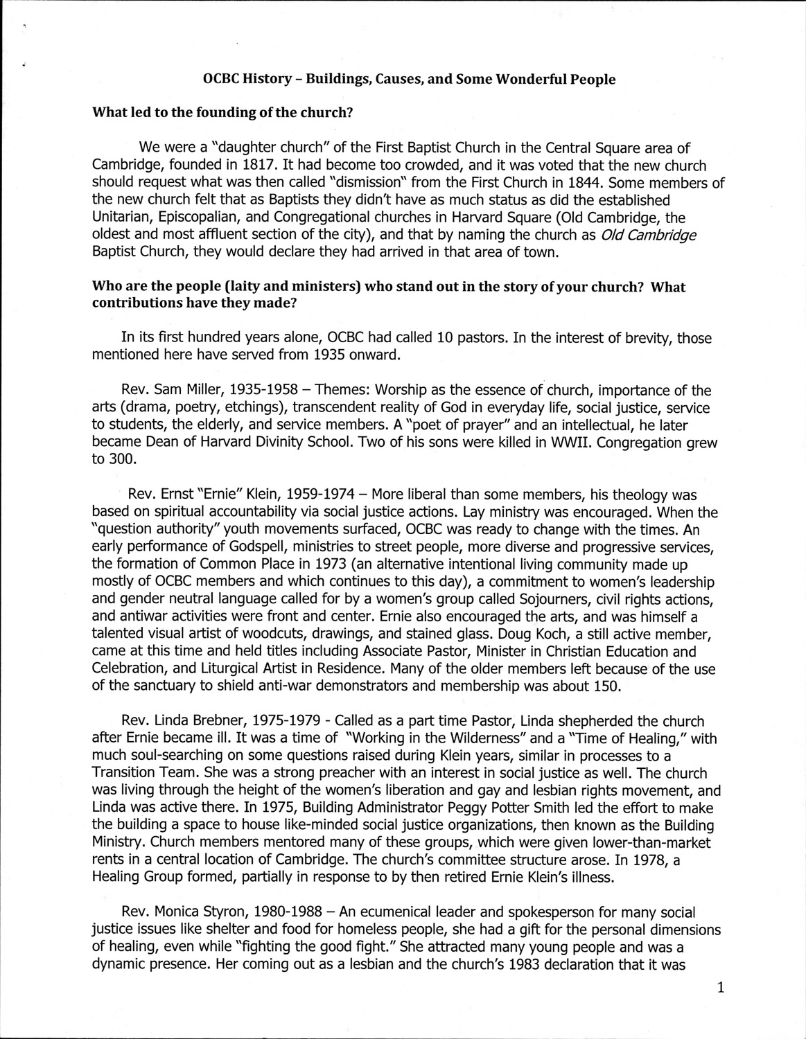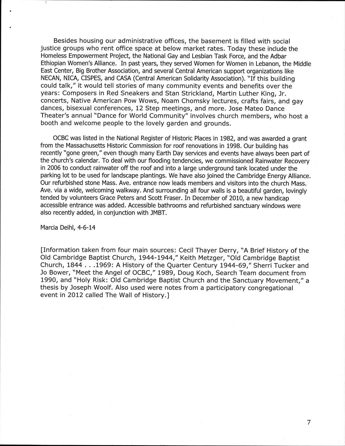 398 Harvard St - Old Cambridge Baptist Church - Published Material