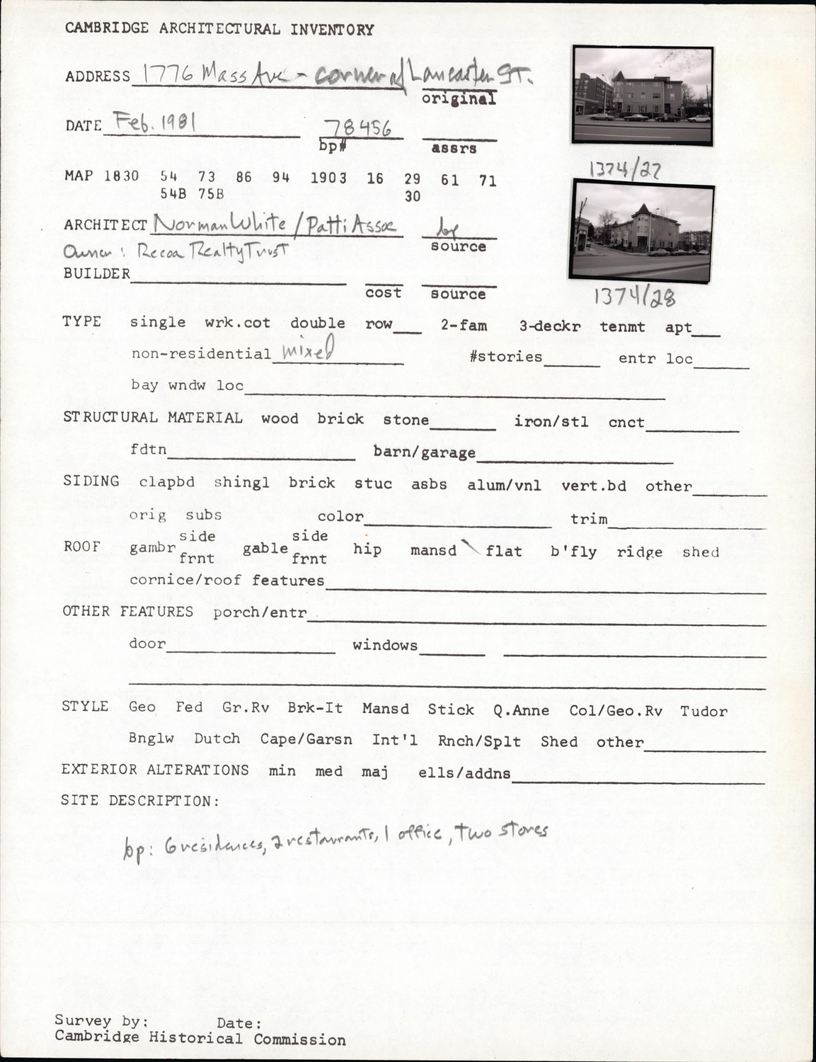 1776 Massachusetts Ave - Architectural Inventory Form