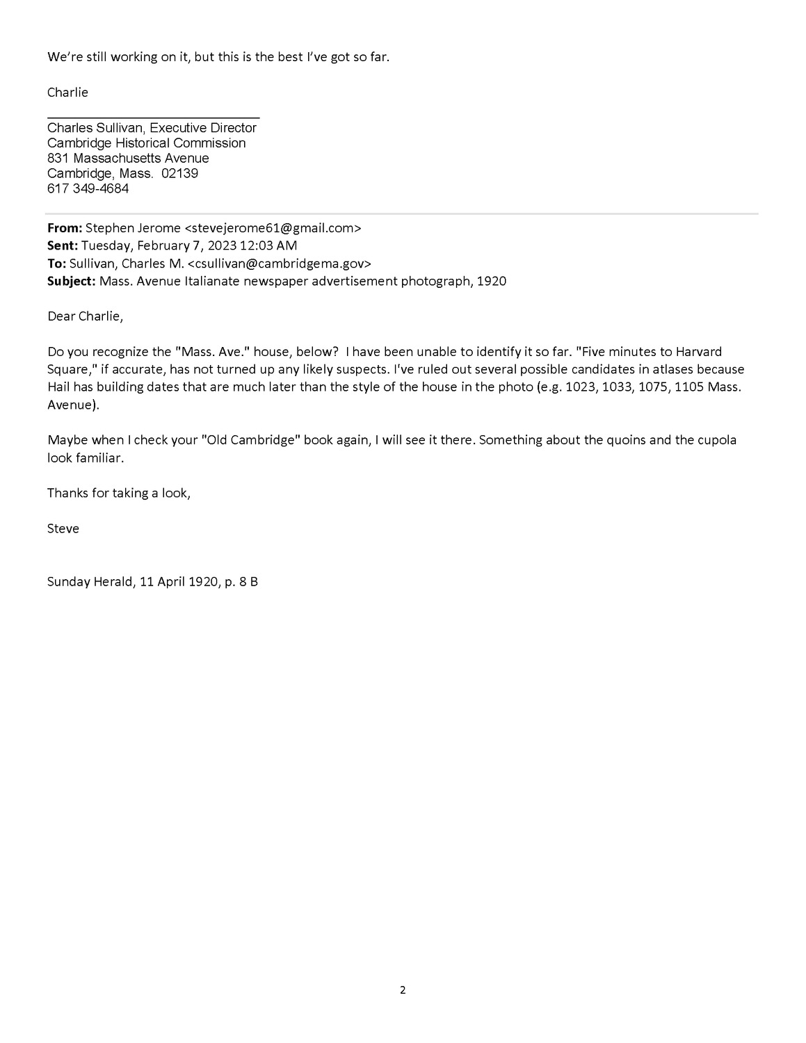 1780 Massachusetts Ave - Correspondence