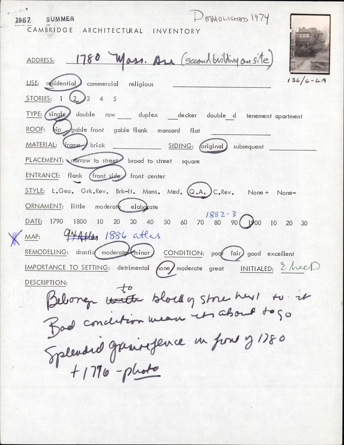 1780 Massachusetts Ave - Architectural Inventory Form
