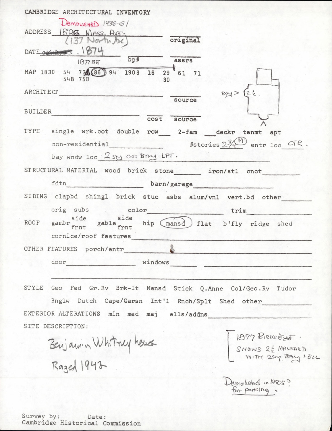 - Cambridge Historical Commission, Digital Architectural Survey and History.