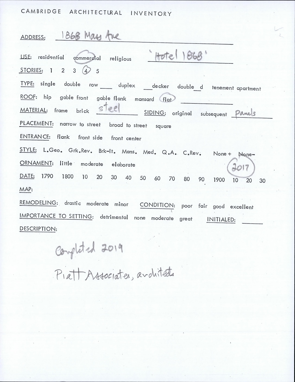 1868 Massachusetts Ave - Architectural Inventory Form