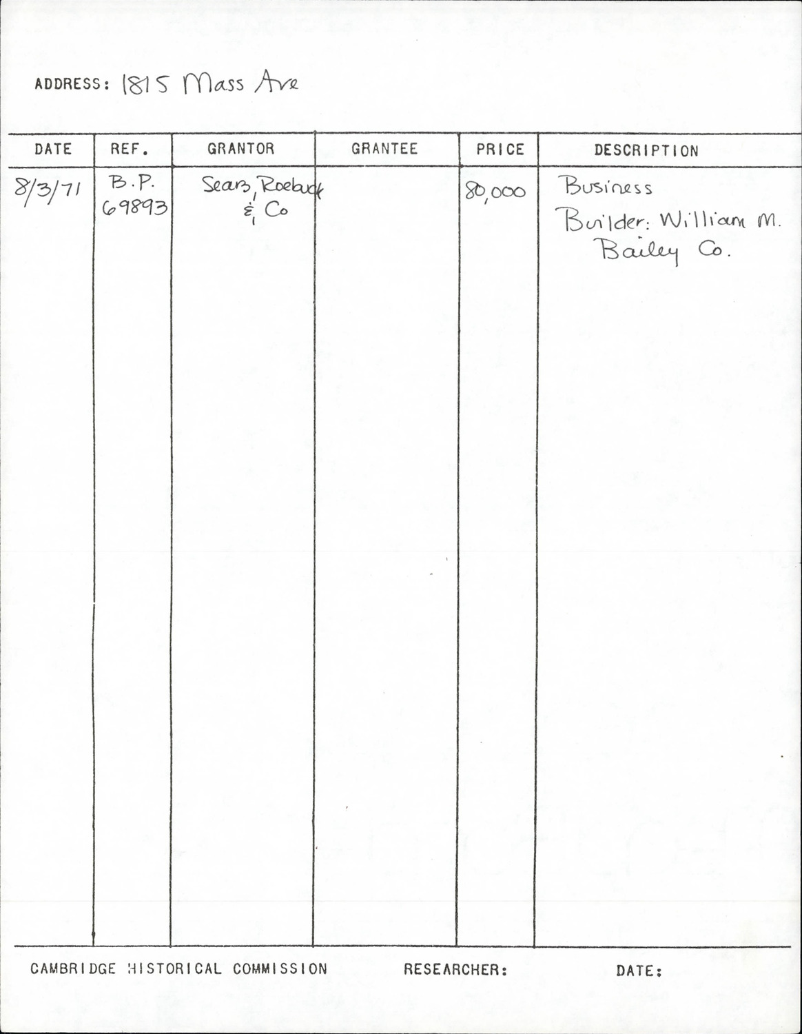 - Cambridge Historical Commission, Digital Architectural Survey and History.