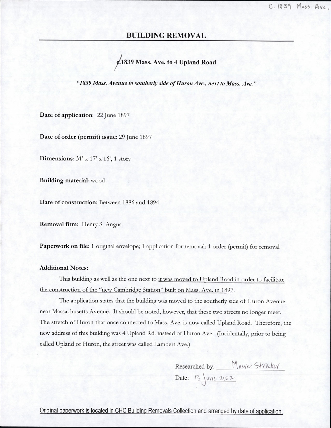 1839 Massachusetts Ave - Research Form