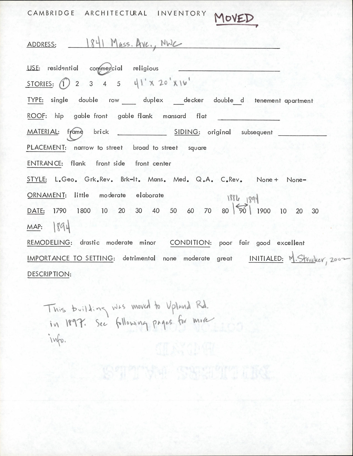 1841 Massachusetts Ave - Architectural Inventory Form
