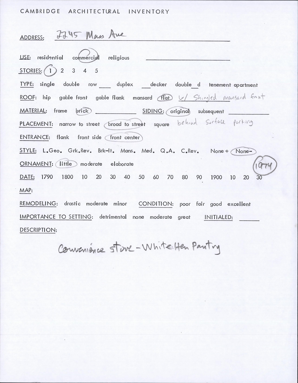 - Cambridge Historical Commission, Digital Architectural Survey and History.