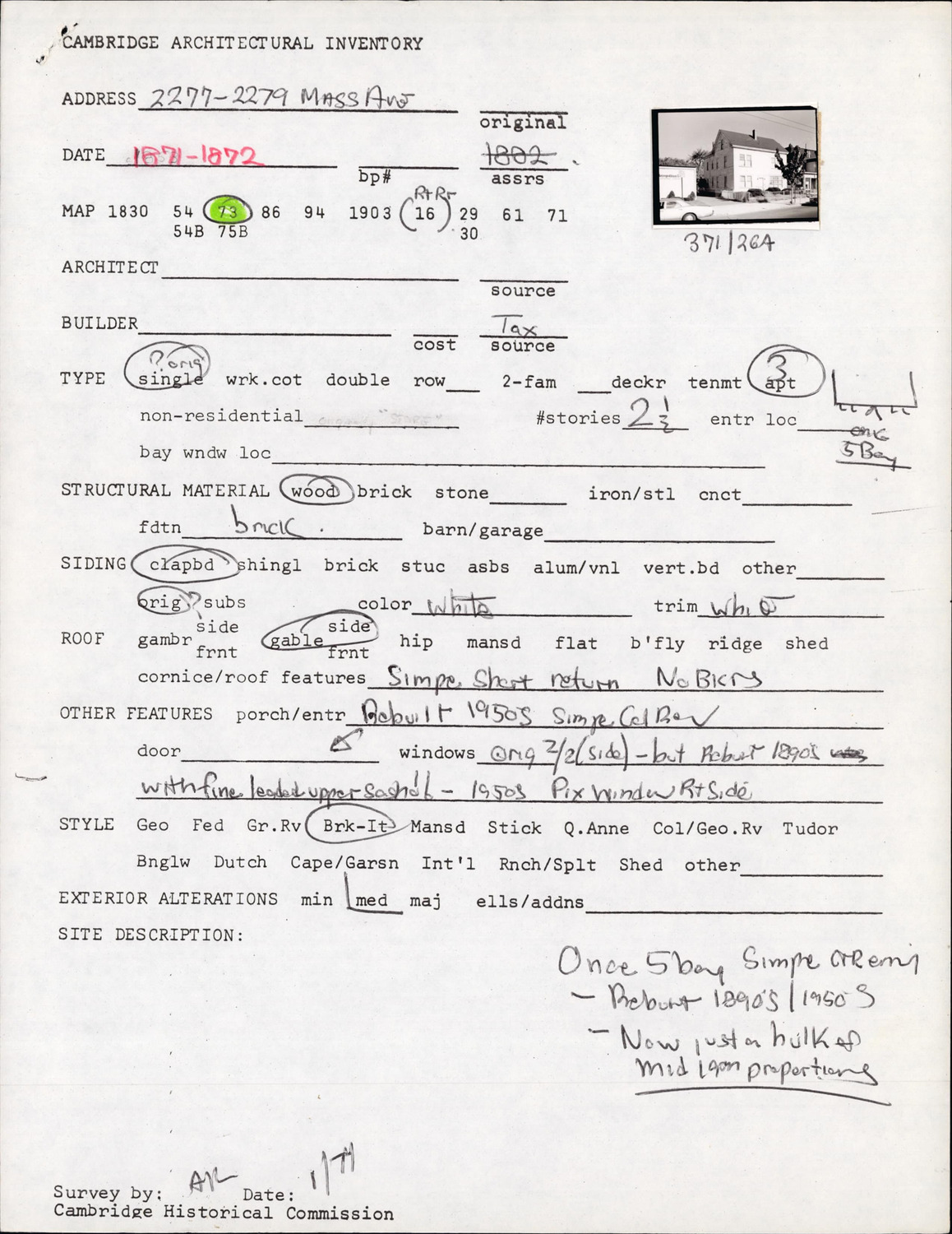 2277-2279 Massachusetts Ave - Architectural Inventory Form