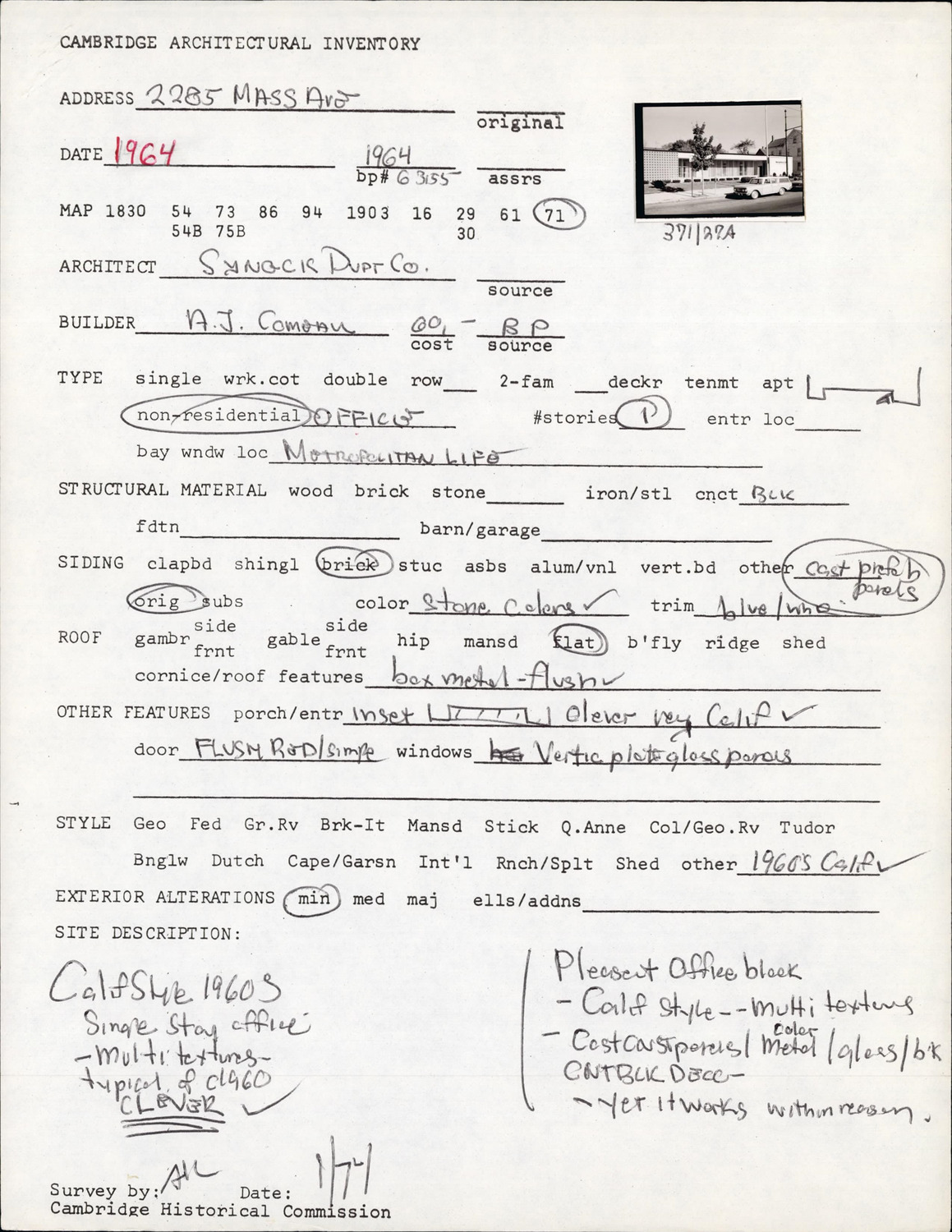 2285-2295 Massachusetts Ave - Architectural Inventory Form