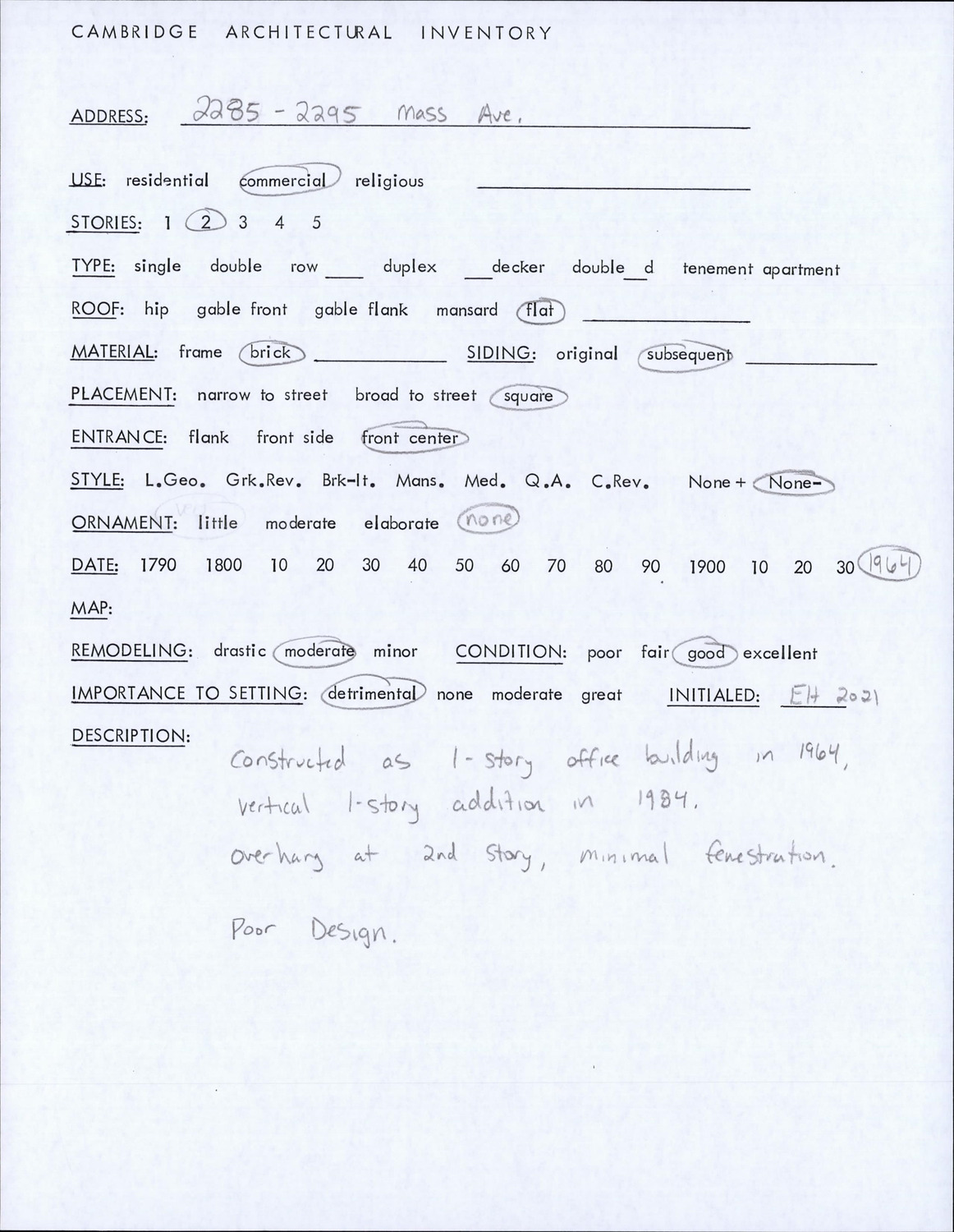 2285-2295 Massachusetts Ave - Architectural Inventory Form