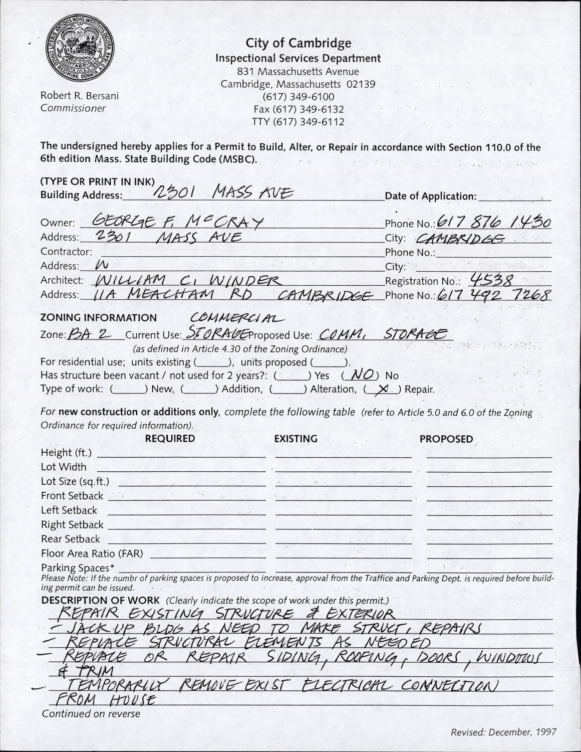 2301 Massachusetts Ave - Supplemental Material