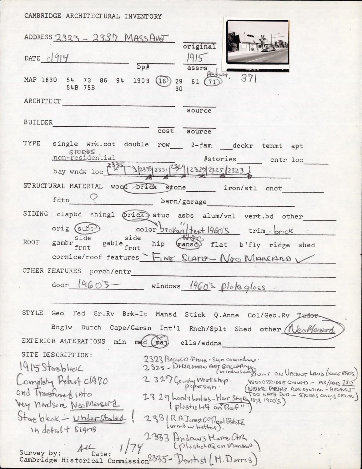 2323-2337 Massachusetts Ave - Architectural Inventory Form