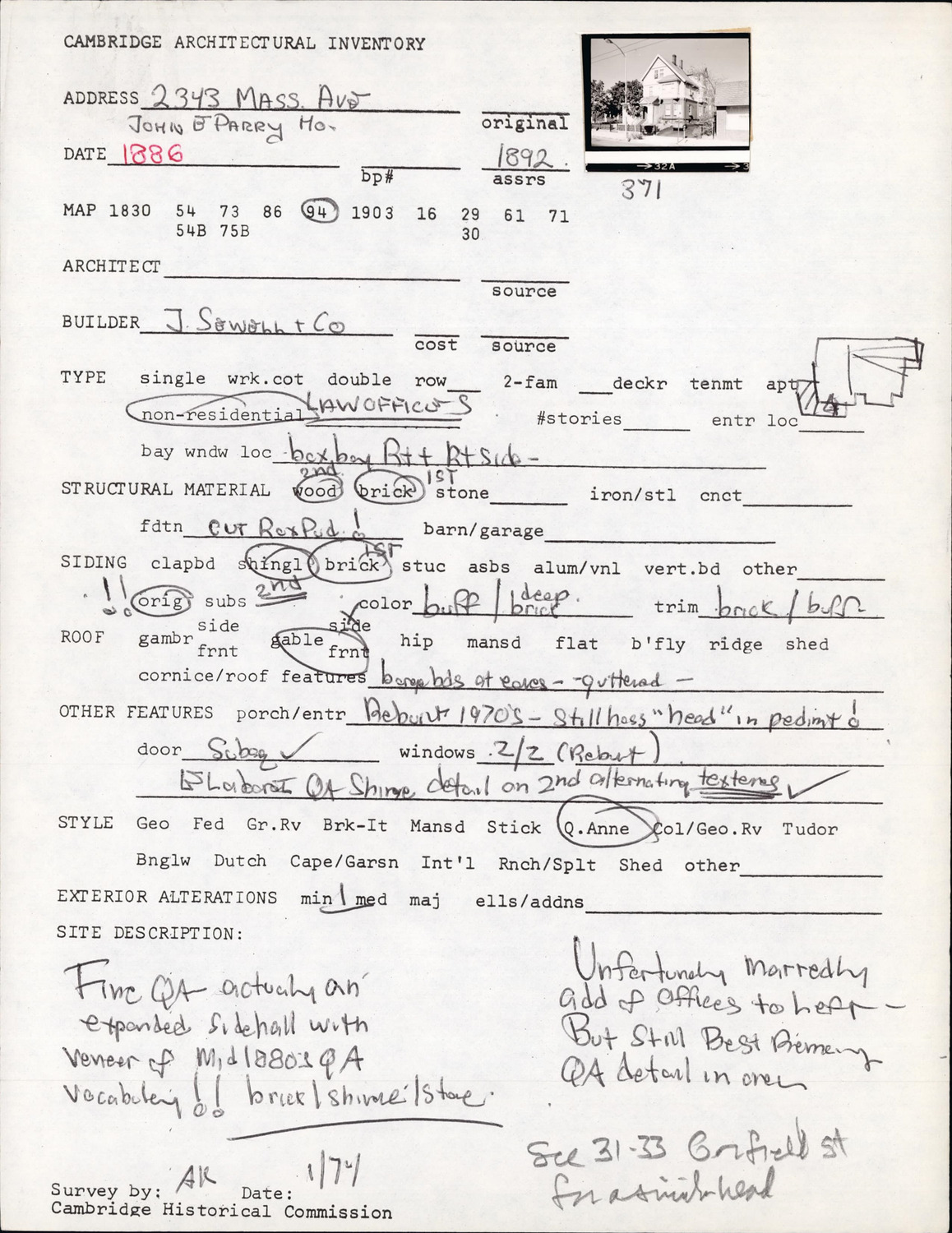 - Cambridge Historical Commission, Digital Architectural Survey and History.