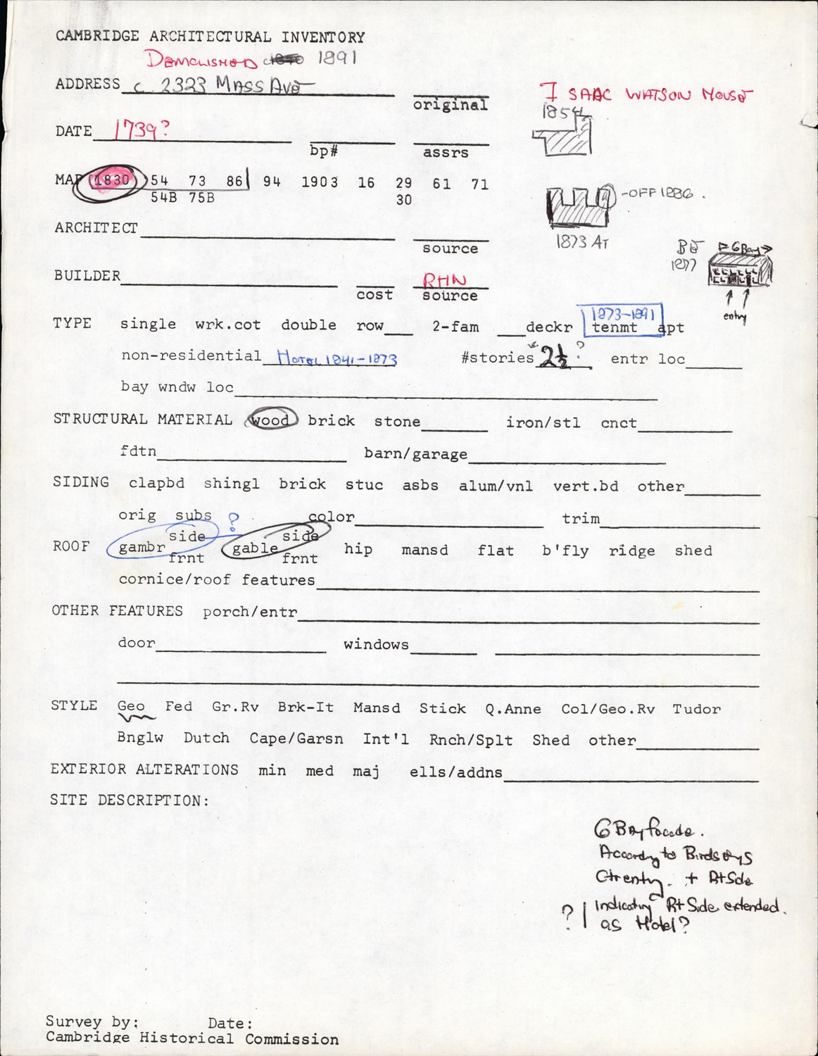 - Cambridge Historical Commission, Digital Architectural Survey and History.