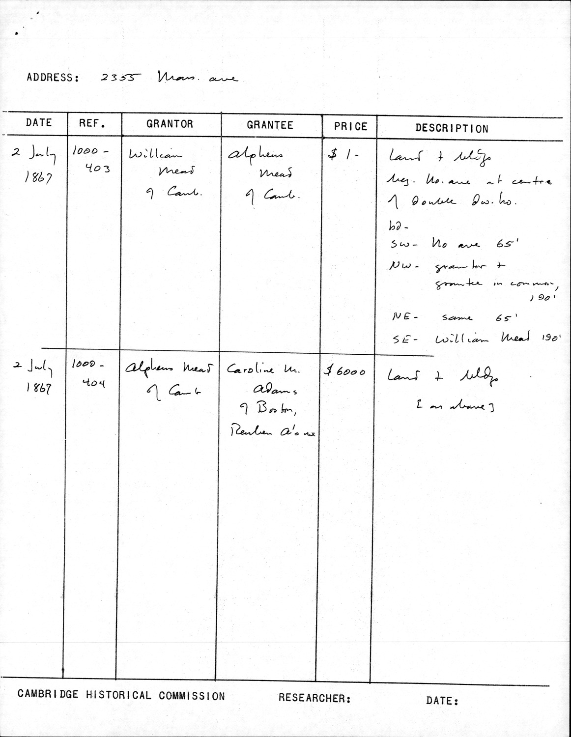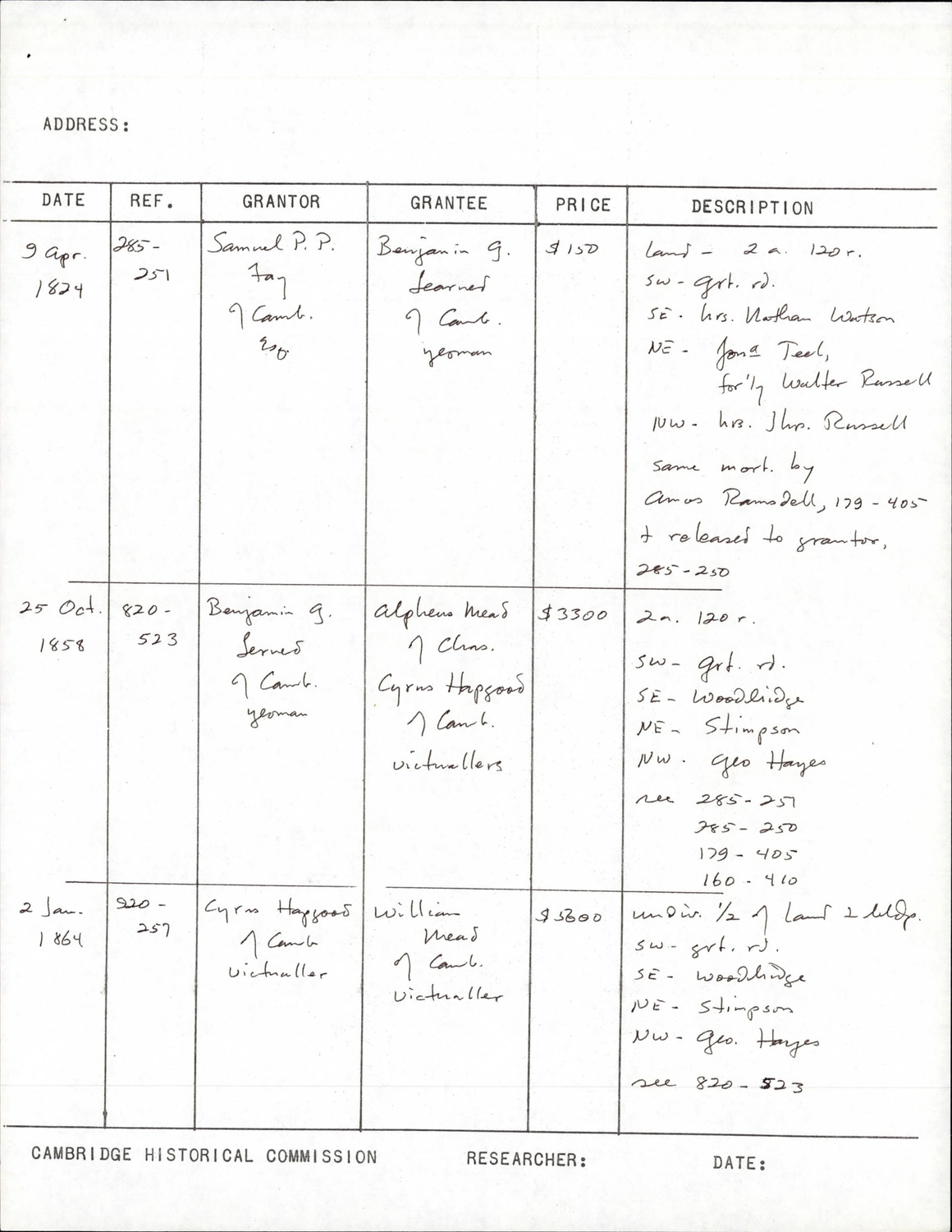 - Cambridge Historical Commission, Digital Architectural Survey and History.