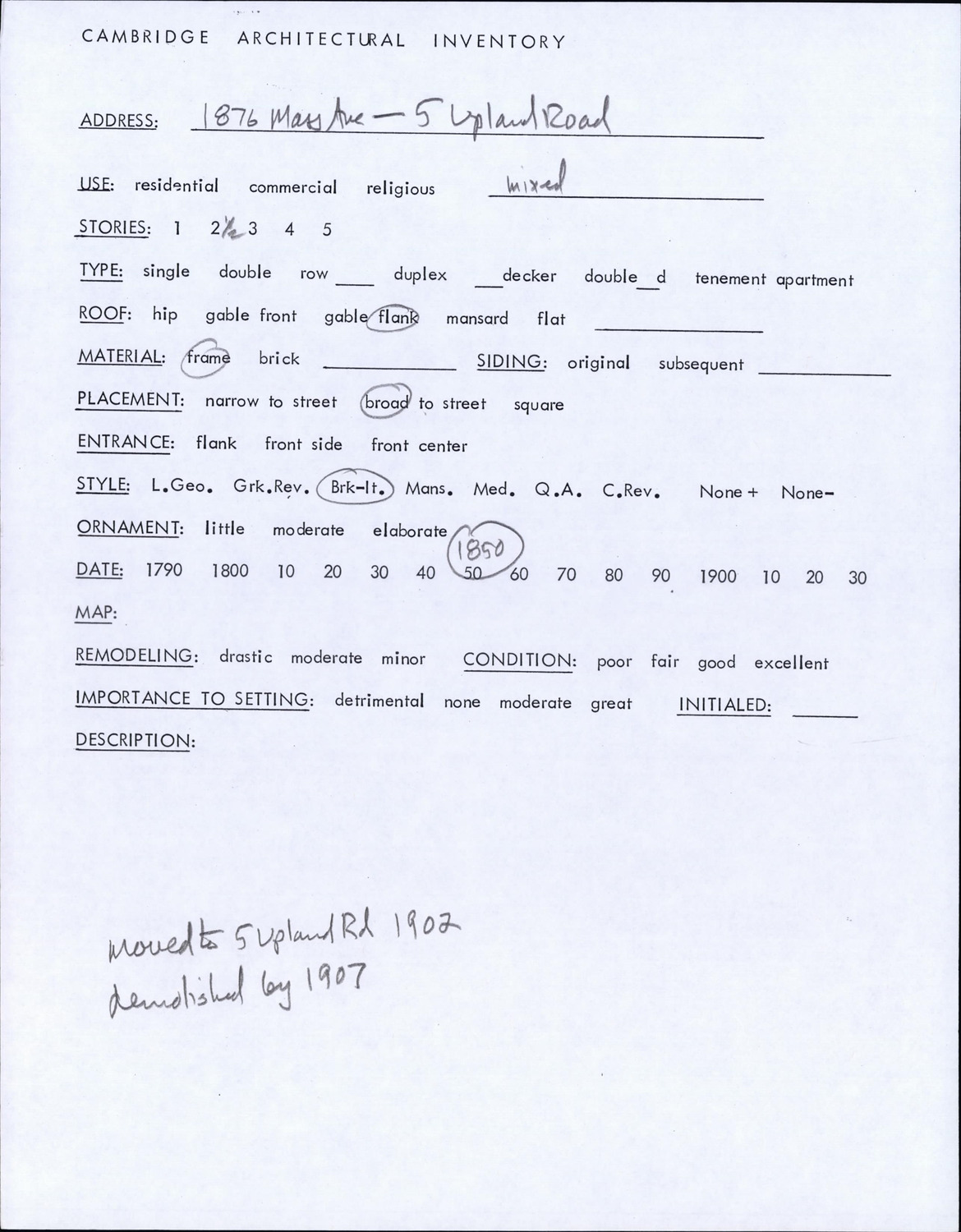 - Cambridge Historical Commission, Digital Architectural Survey and History.