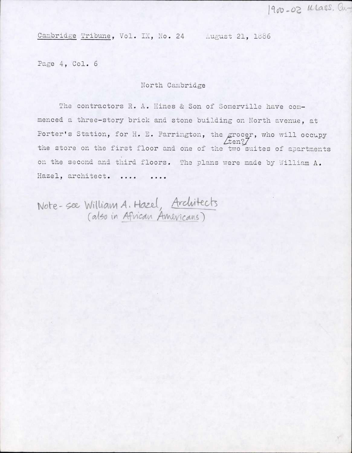 - Cambridge Historical Commission, Digital Architectural Survey and History.