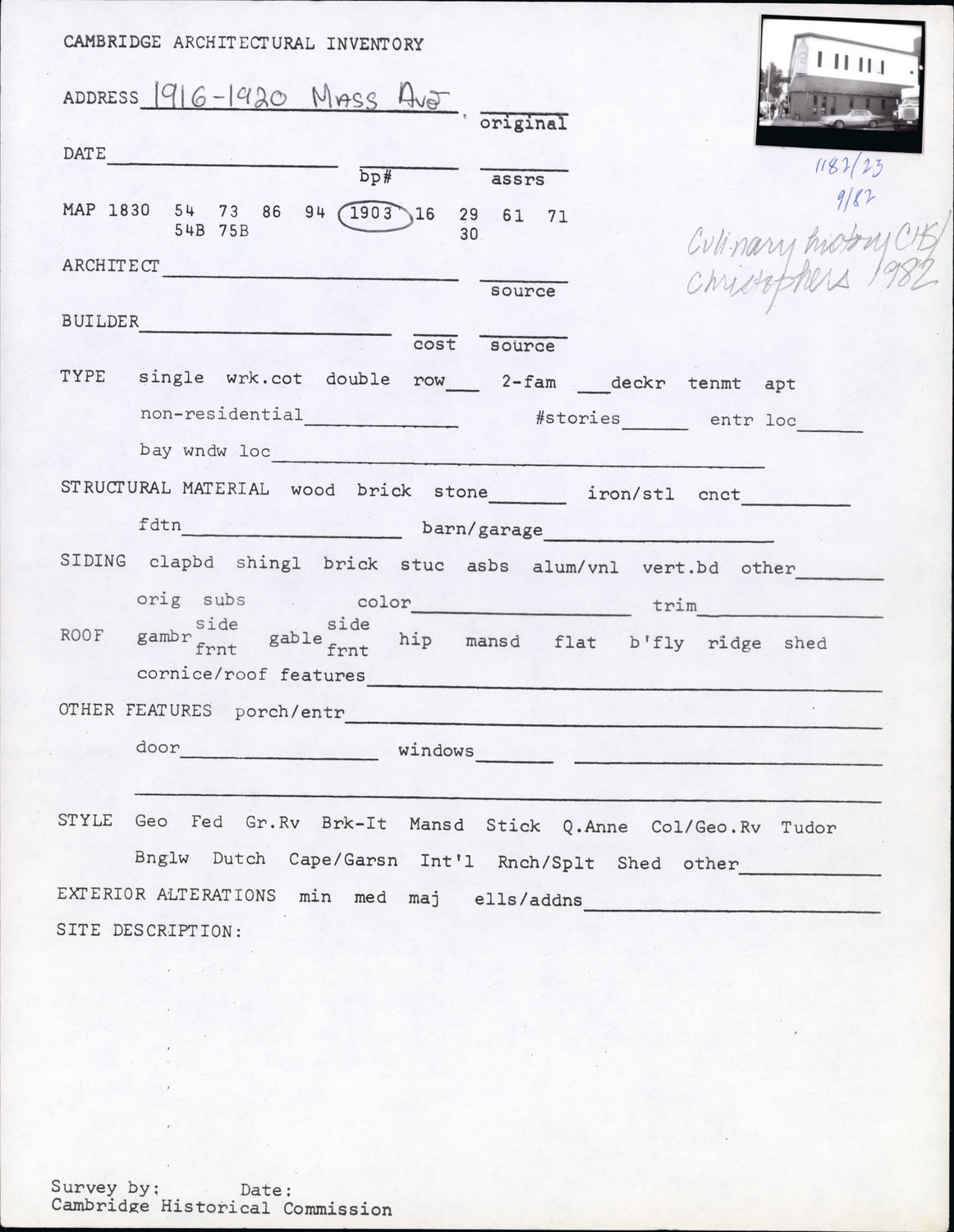 1916-1920 Massachusetts Ave - Architectural Inventory Form