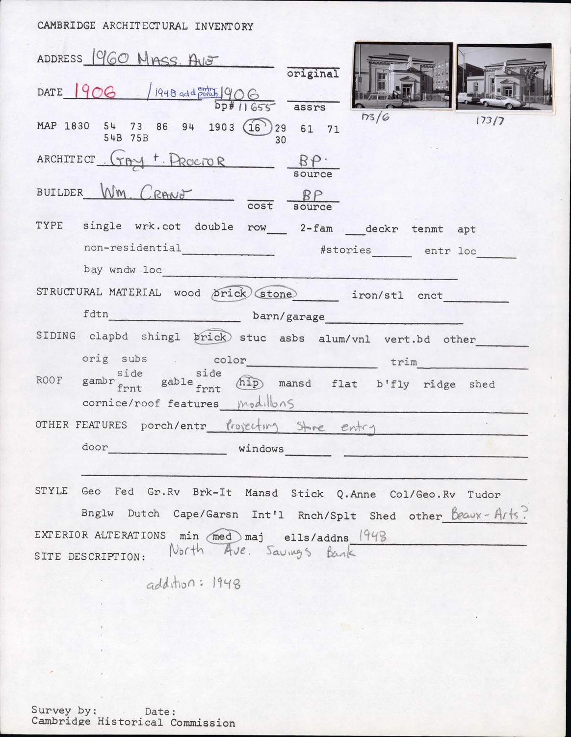 - Cambridge Historical Commission, Digital Architectural Survey and History.