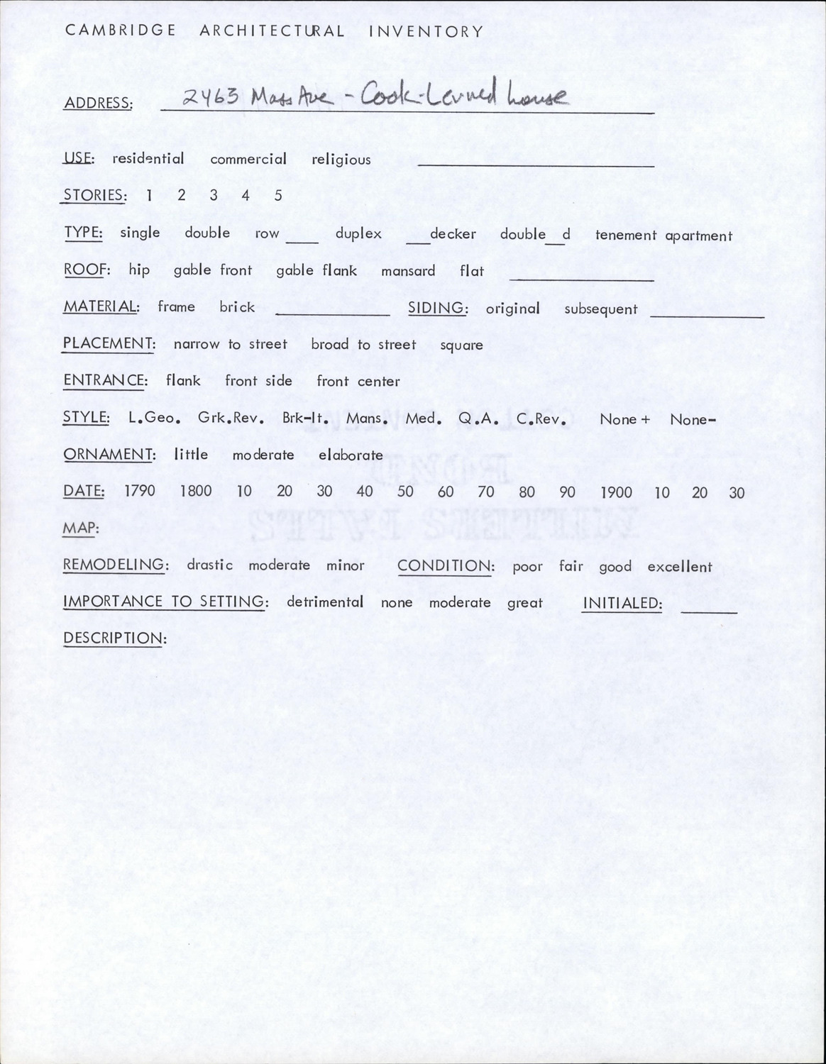 - Cambridge Historical Commission, Digital Architectural Survey and History.