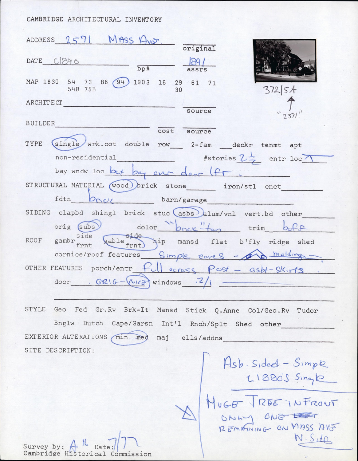 - Cambridge Historical Commission, Digital Architectural Survey and History.