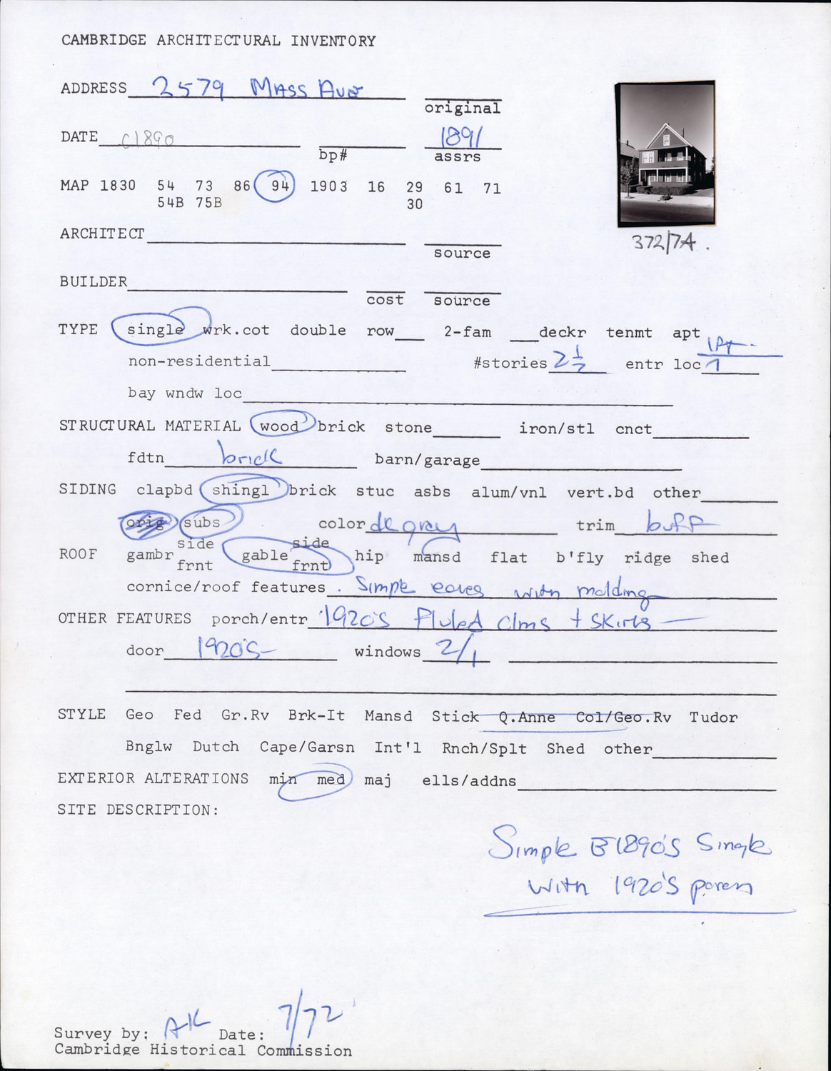 2579 Massachusetts Ave - Architectural Inventory Form