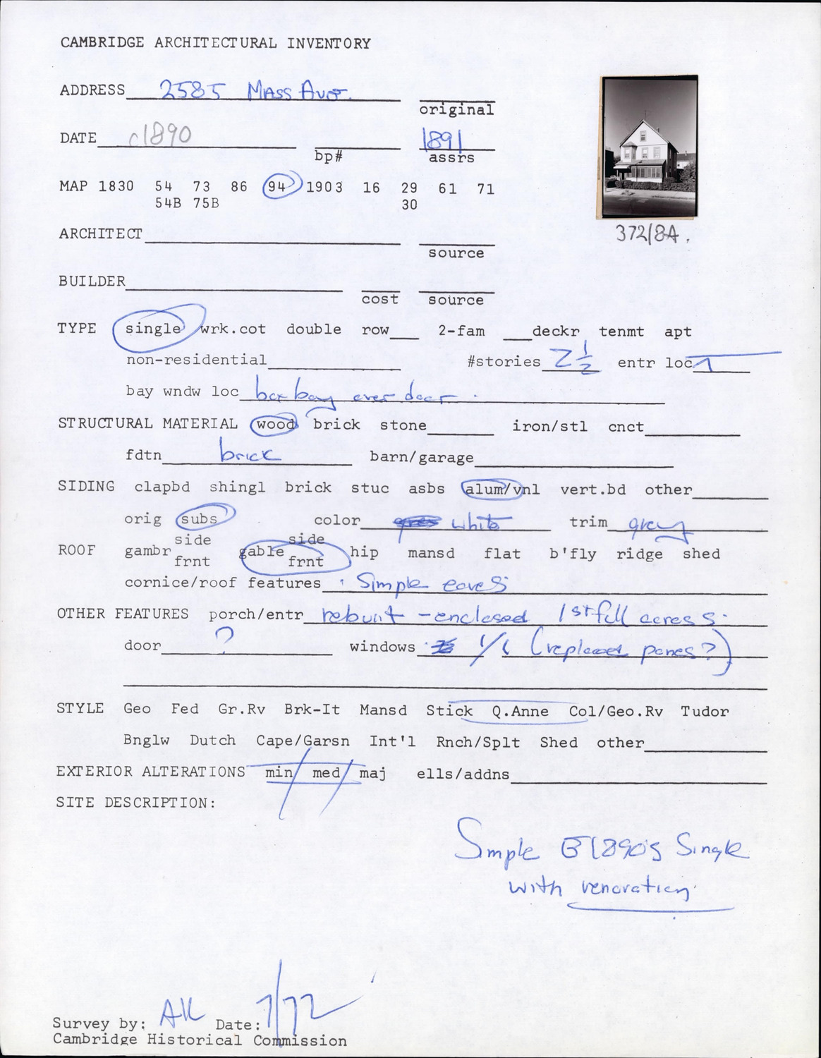 - Cambridge Historical Commission, Digital Architectural Survey and History.