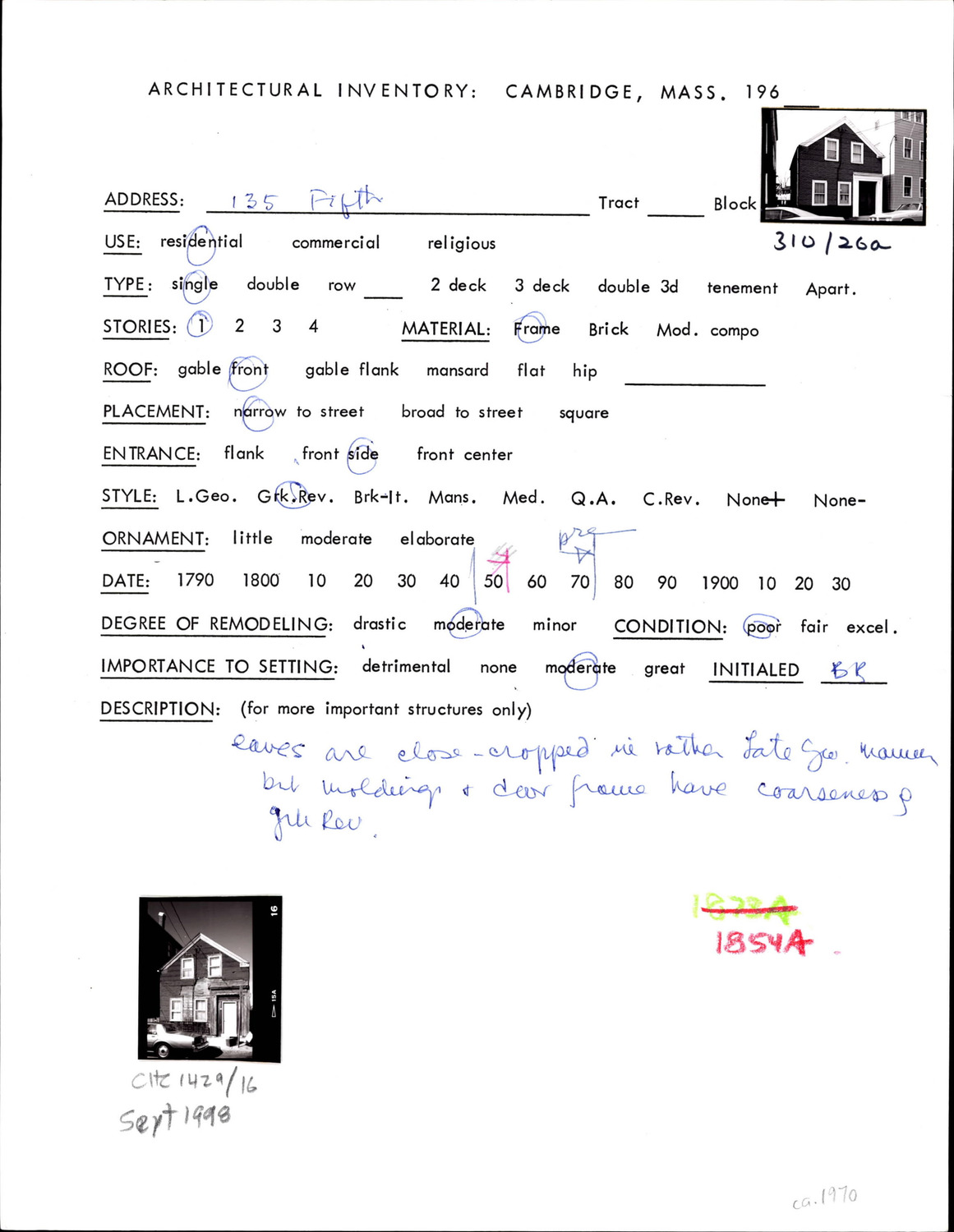 - Cambridge Historical Commission, Digital Architectural Survey and History.