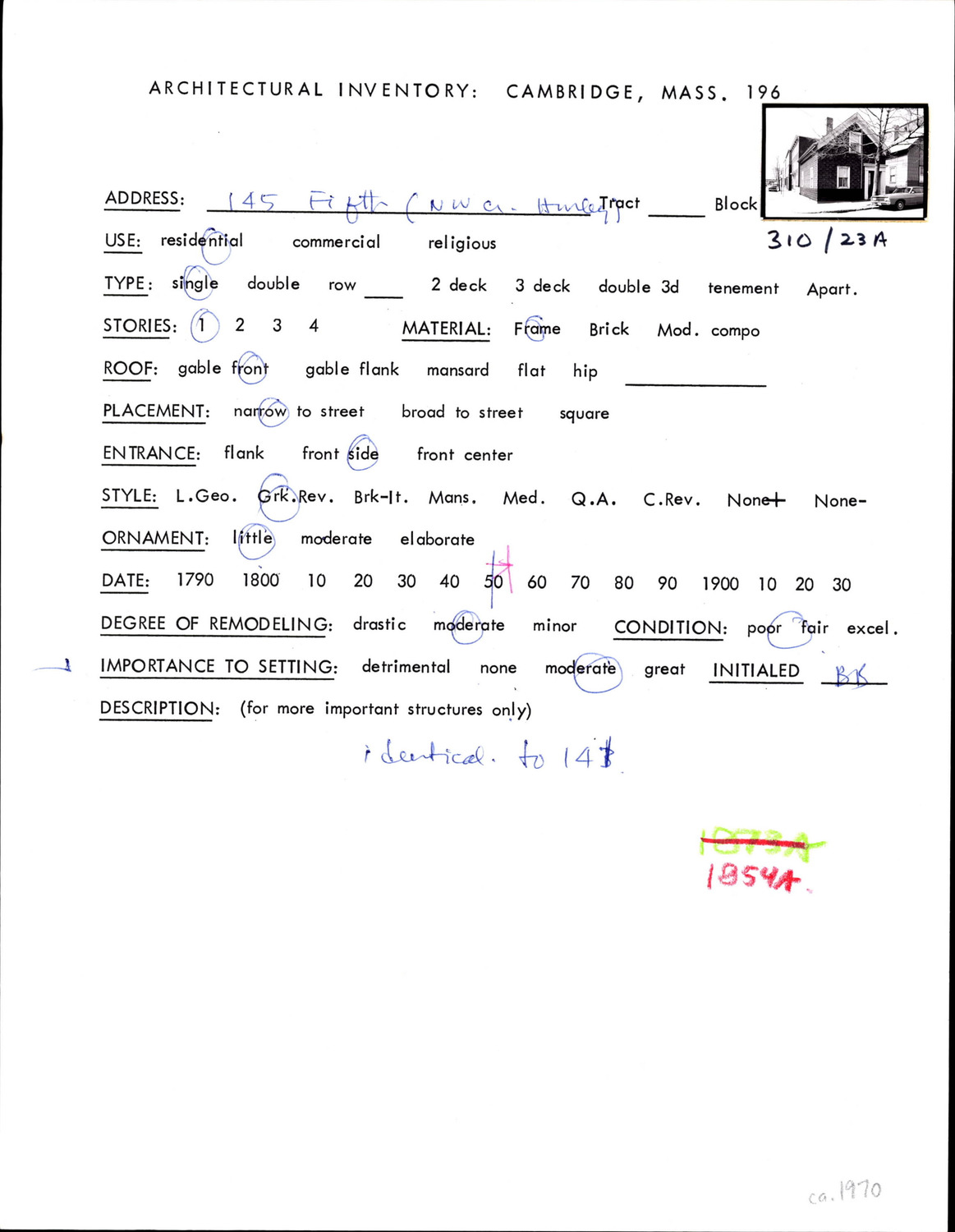 145 Fifth St - Architectural Inventory Form