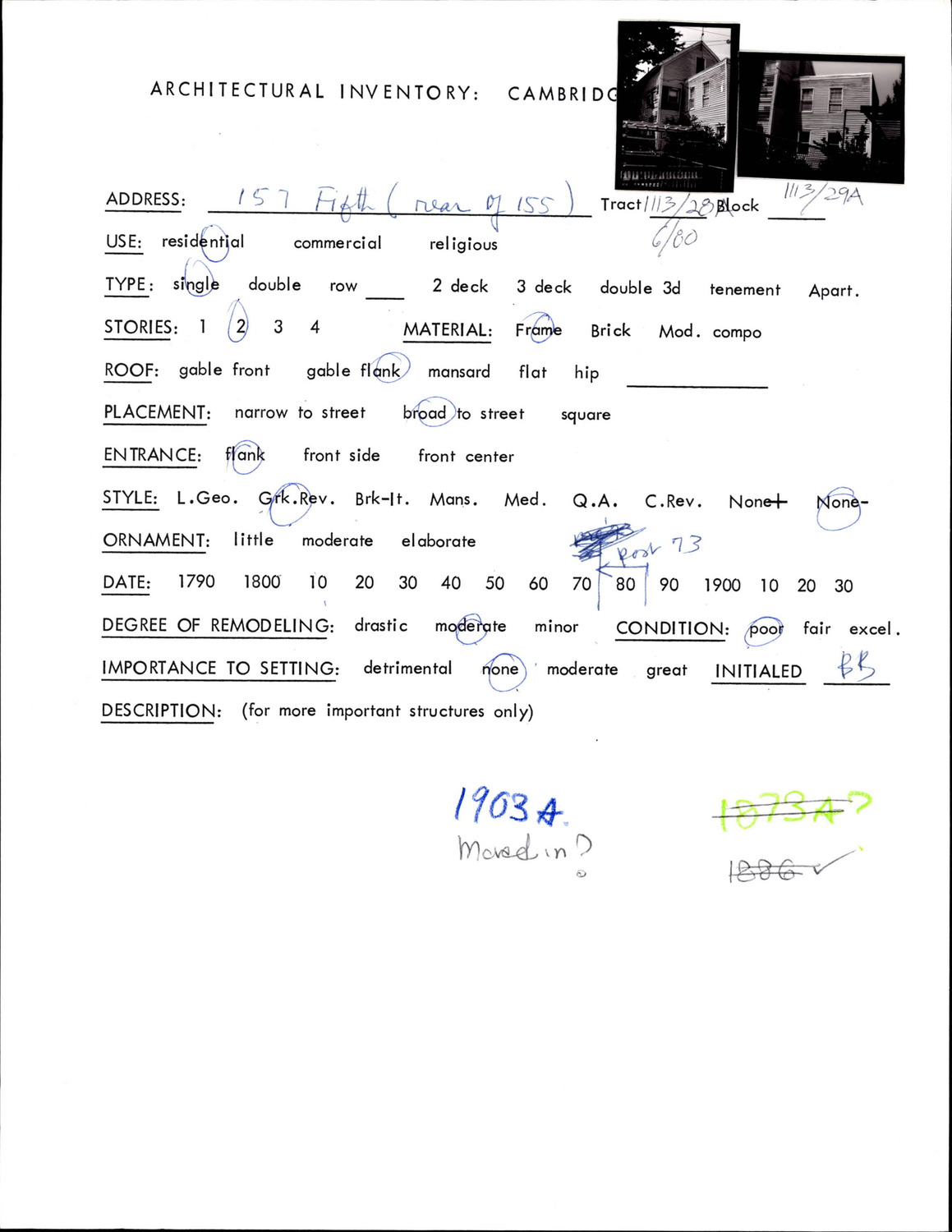 - Cambridge Historical Commission, Digital Architectural Survey and History.