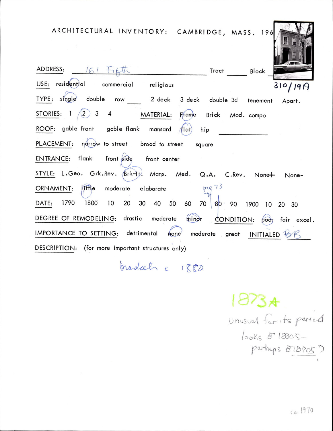 - Cambridge Historical Commission, Digital Architectural Survey and History.