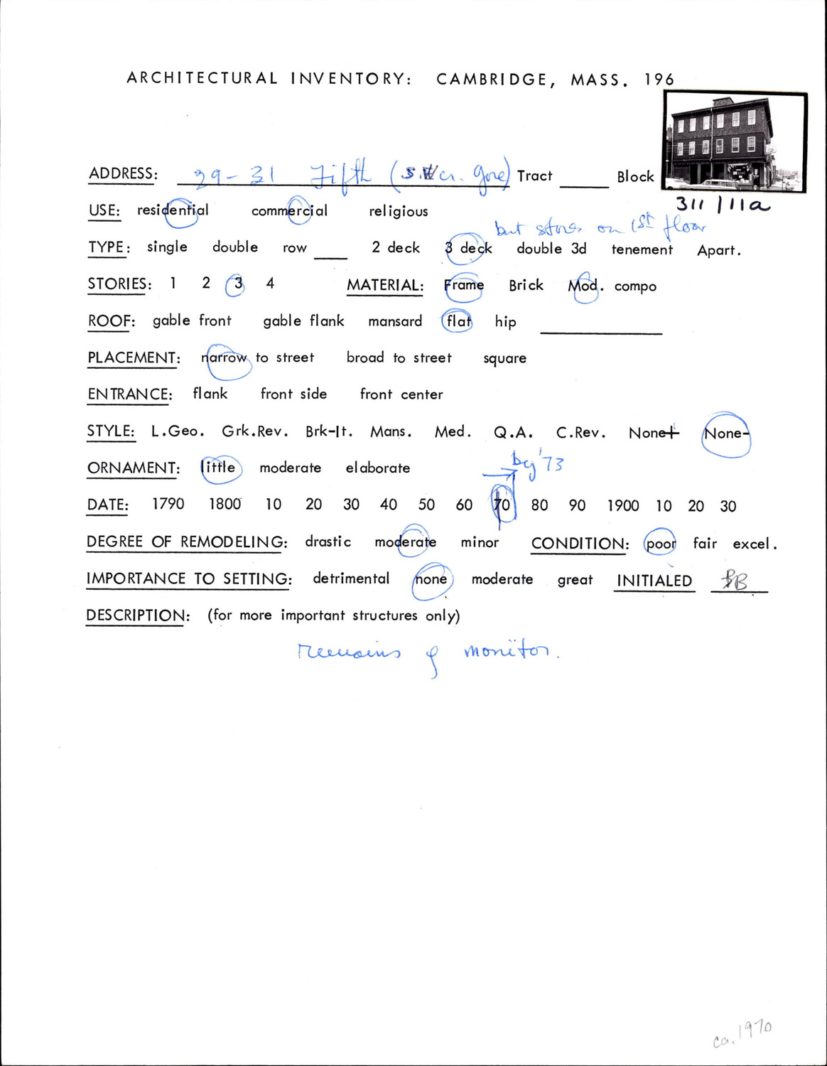 - Cambridge Historical Commission, Digital Architectural Survey and History.