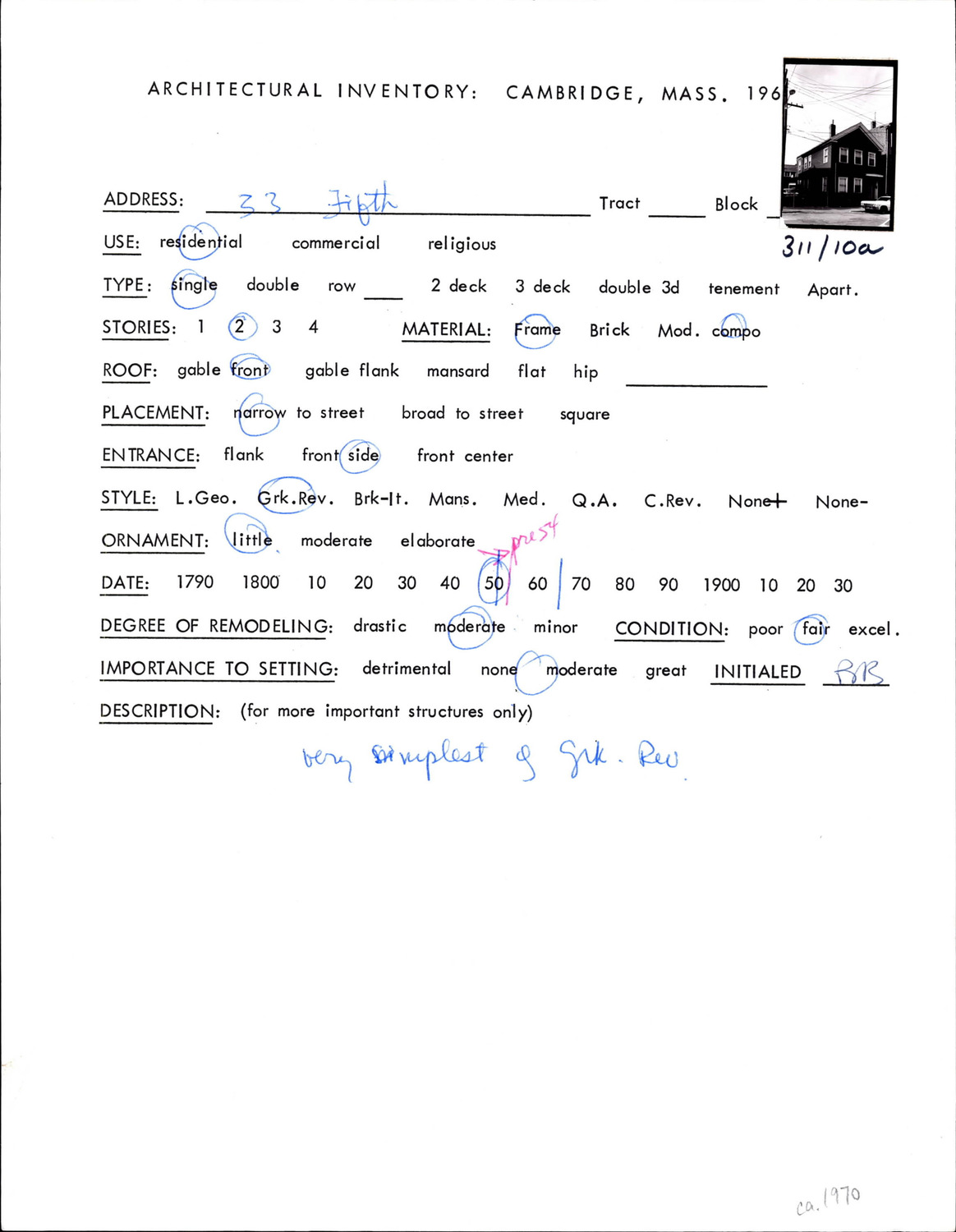 33 Fifth St - Architectural Inventory Form