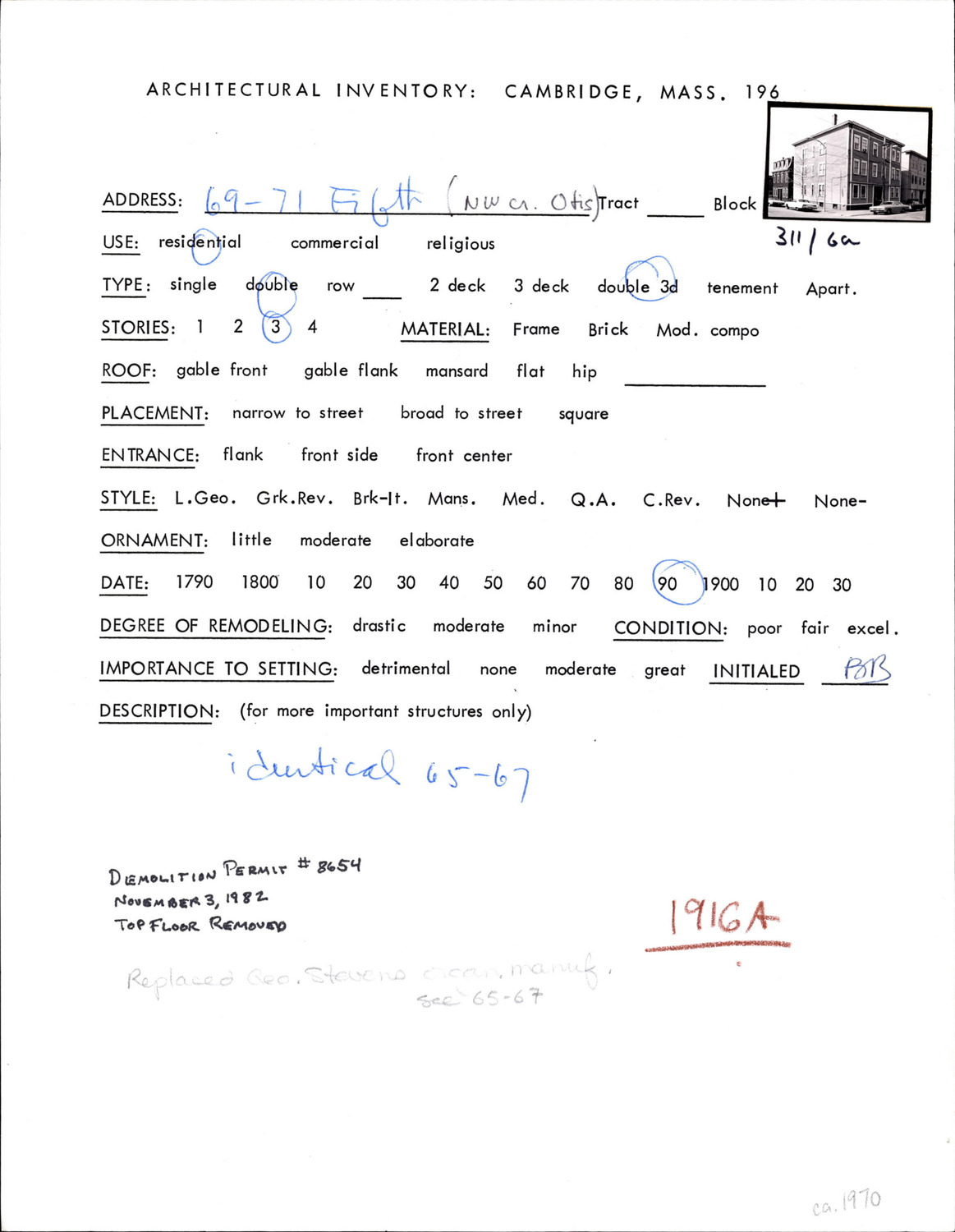 - Cambridge Historical Commission, Digital Architectural Survey and History.