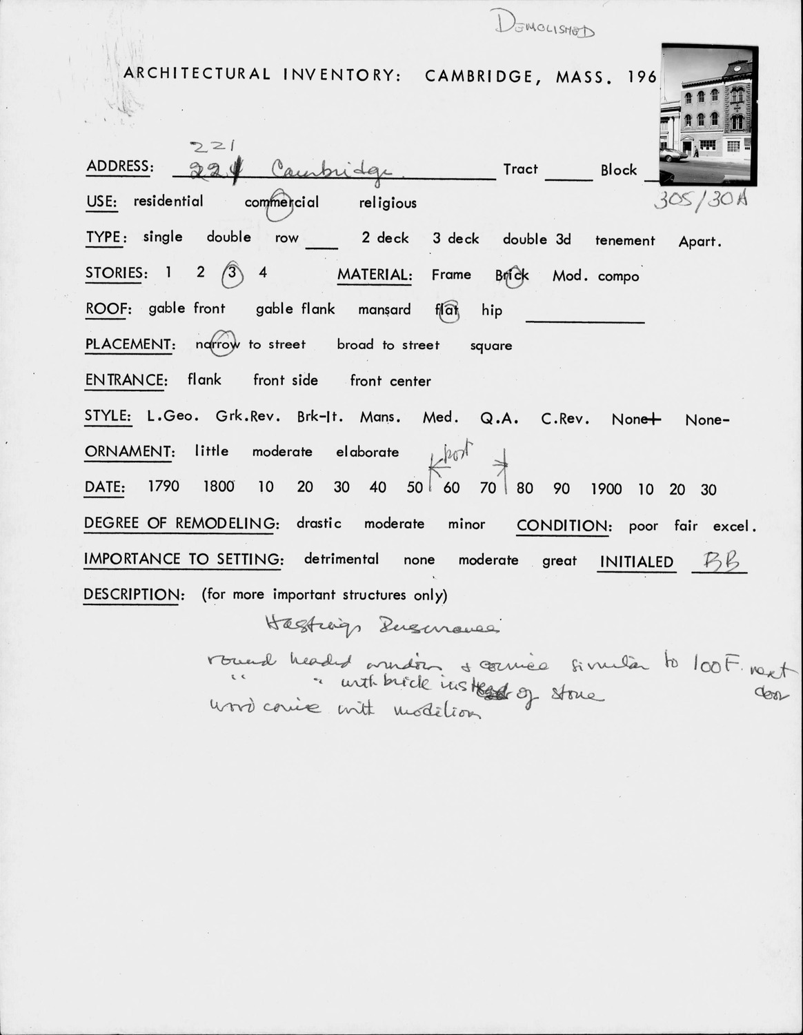 221 Cambridge St - Architectural Inventory Form