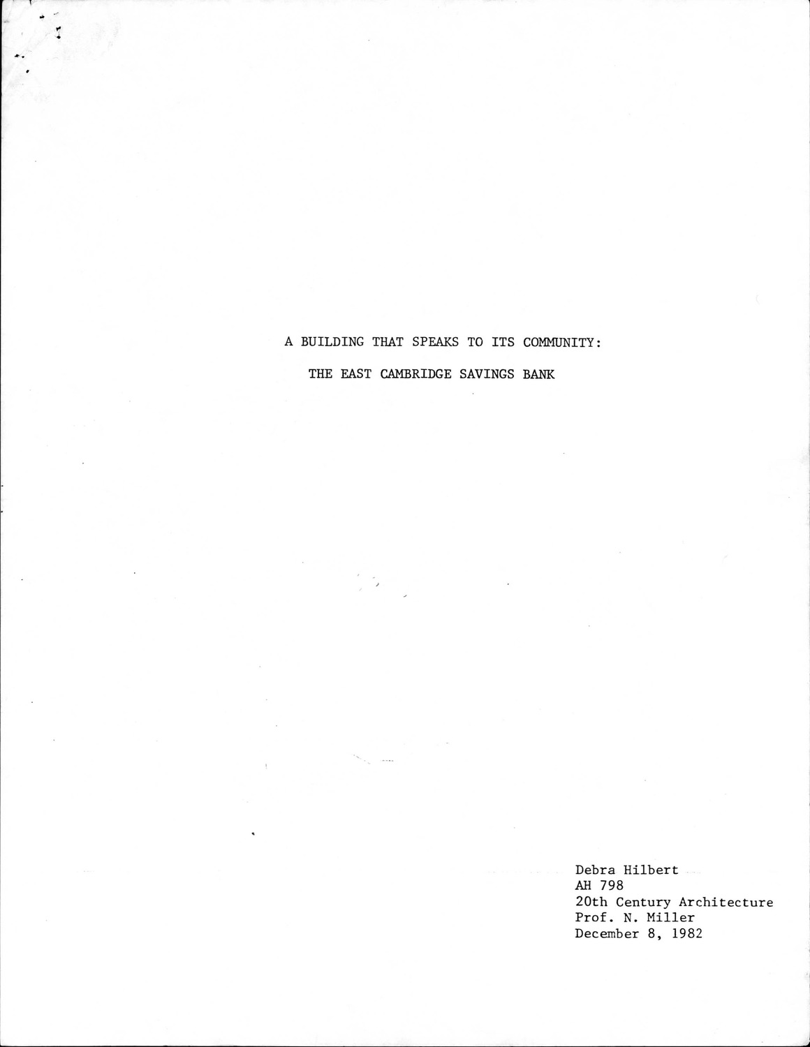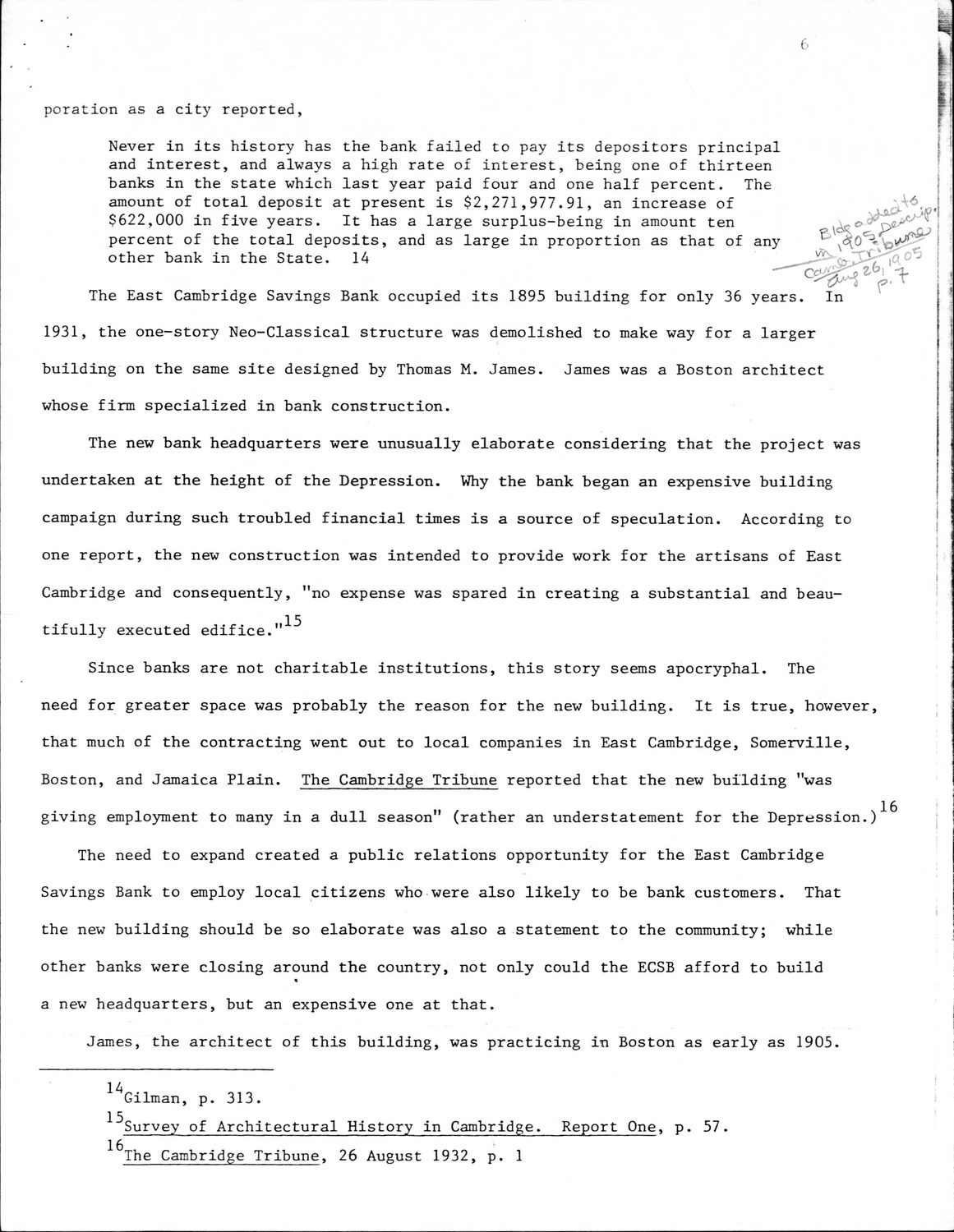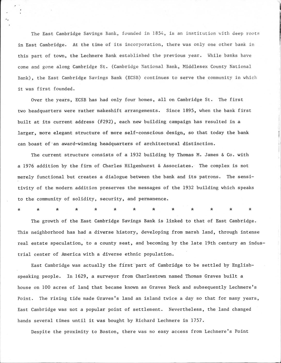 292 Cambridge St - East Cambridge Savings Bank - Supplemental Material