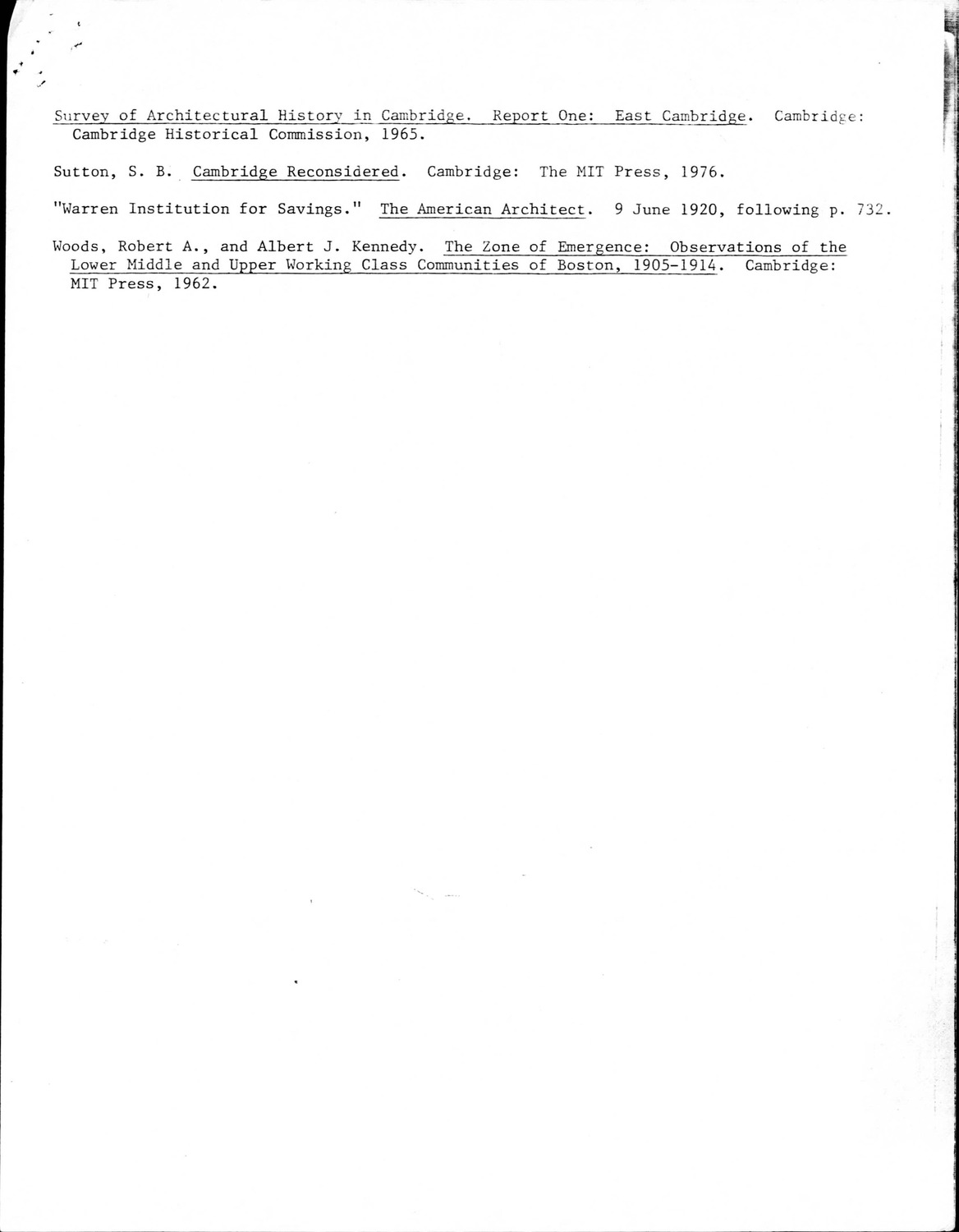 - Cambridge Historical Commission, Digital Architectural Survey and History.