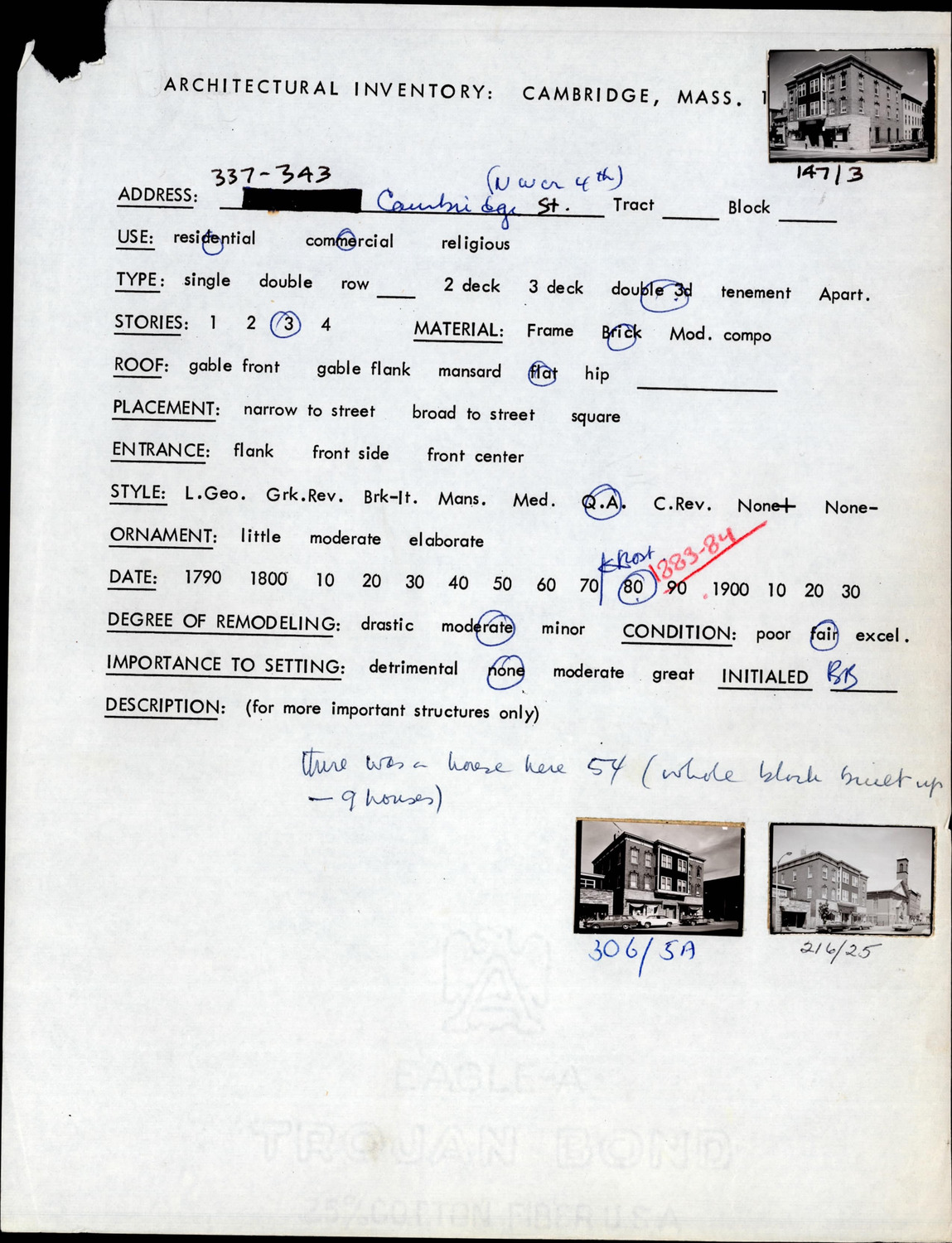 - Cambridge Historical Commission, Digital Architectural Survey and History.