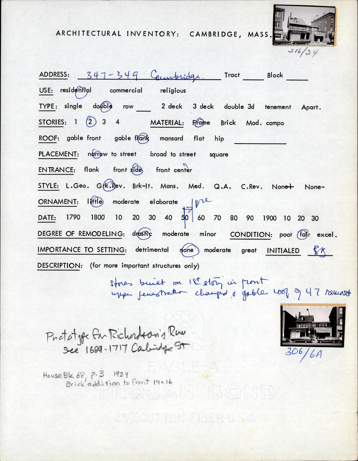 - Cambridge Historical Commission, Digital Architectural Survey and History.