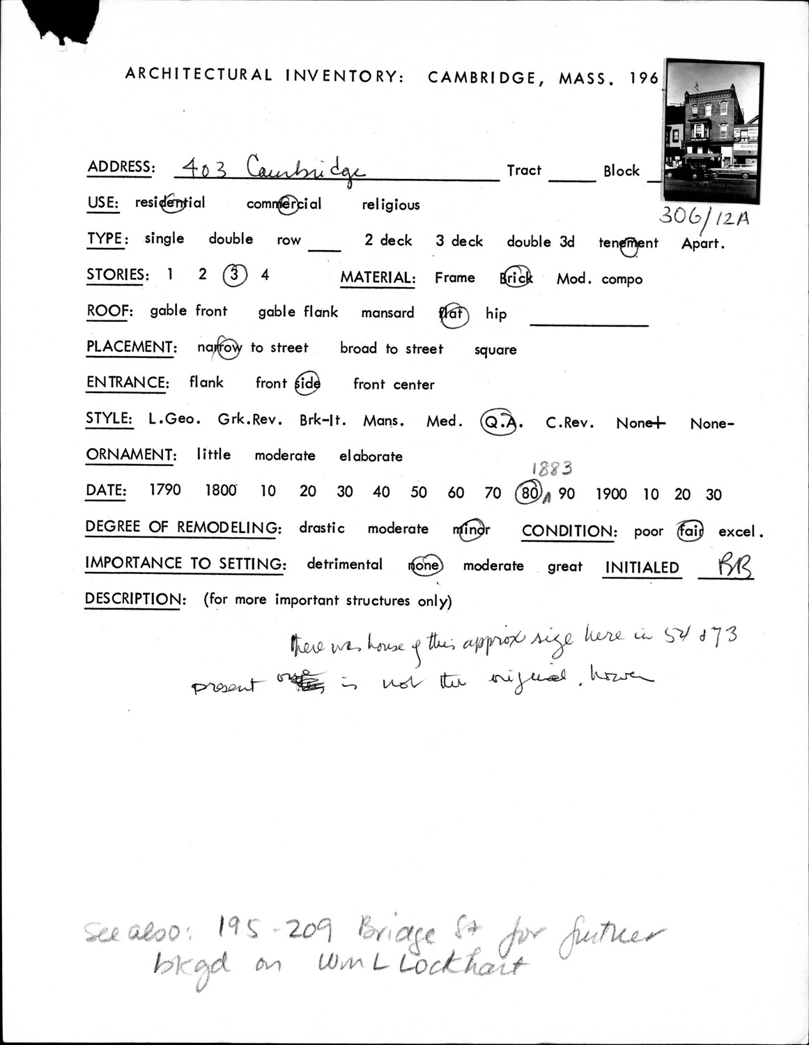 403 Cambridge St - Architectural Inventory Form