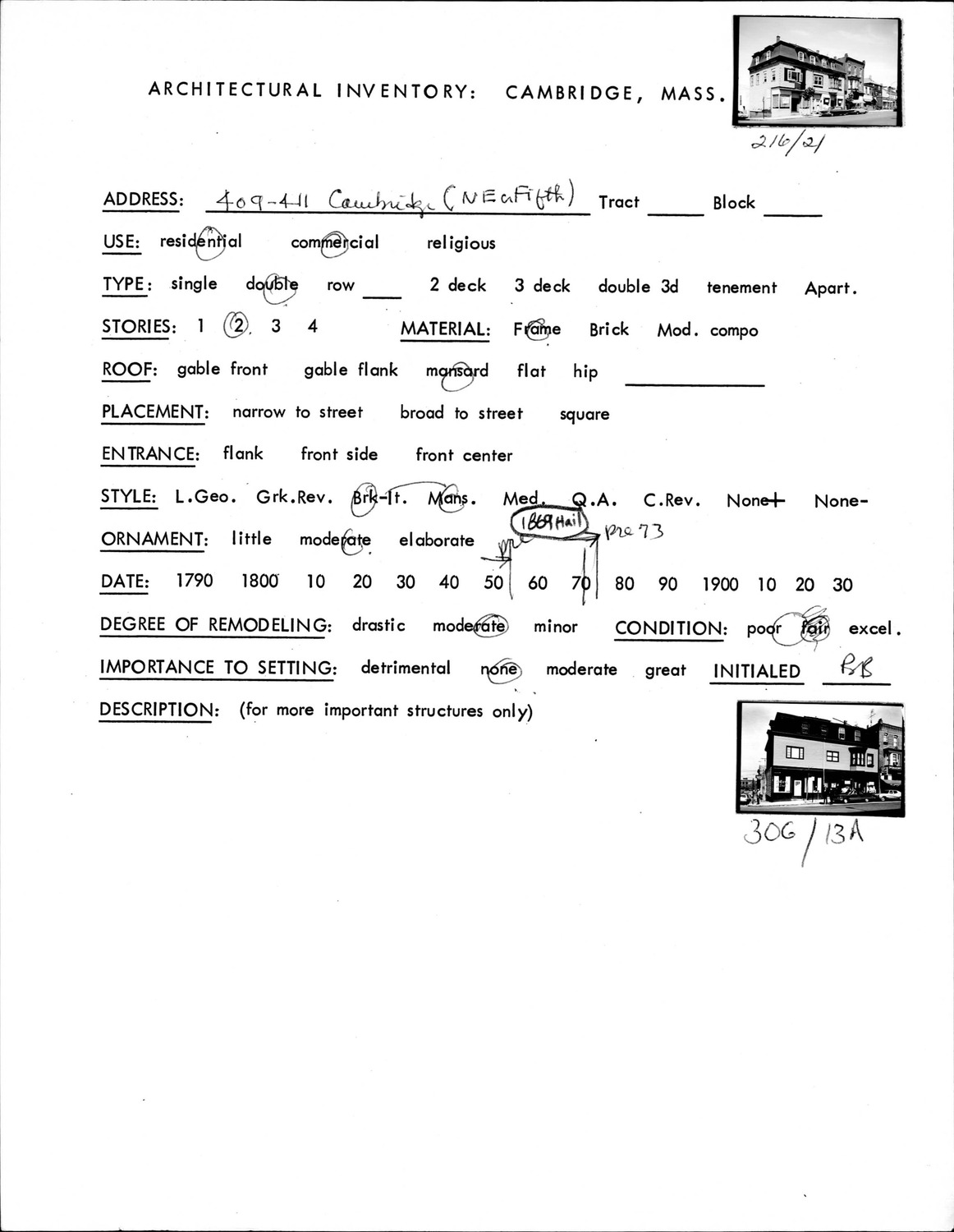 409-411 Cambridge St - Architectural Inventory Form