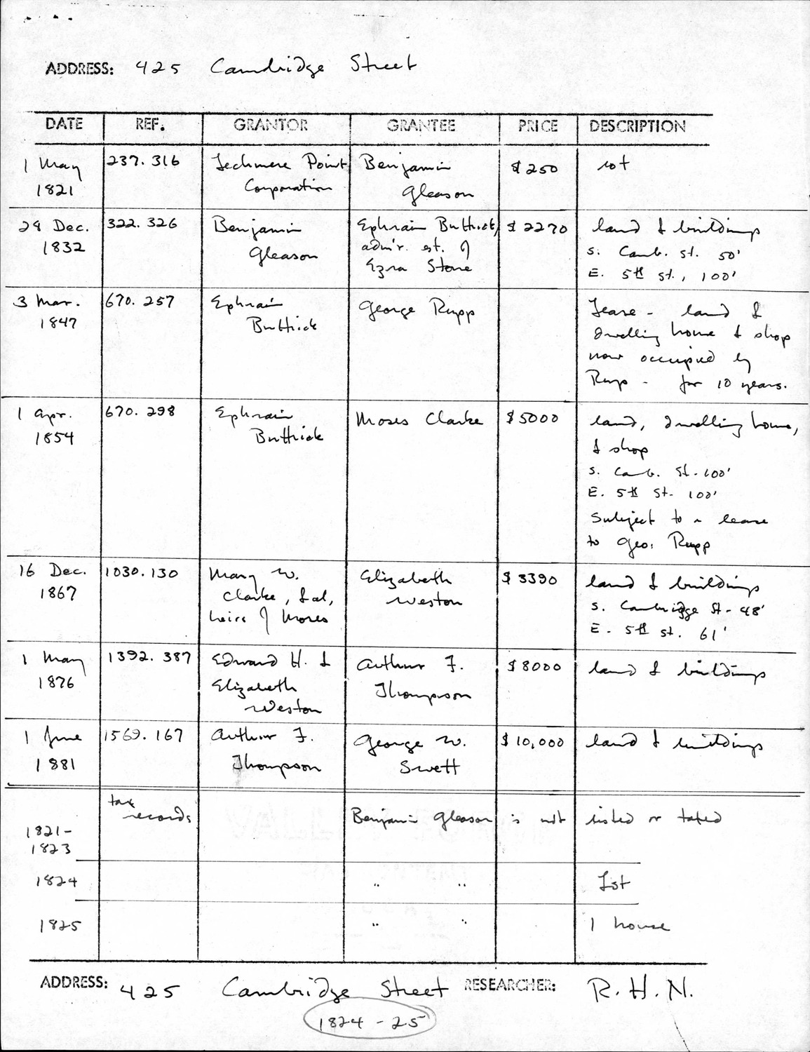 - Cambridge Historical Commission, Digital Architectural Survey and History.