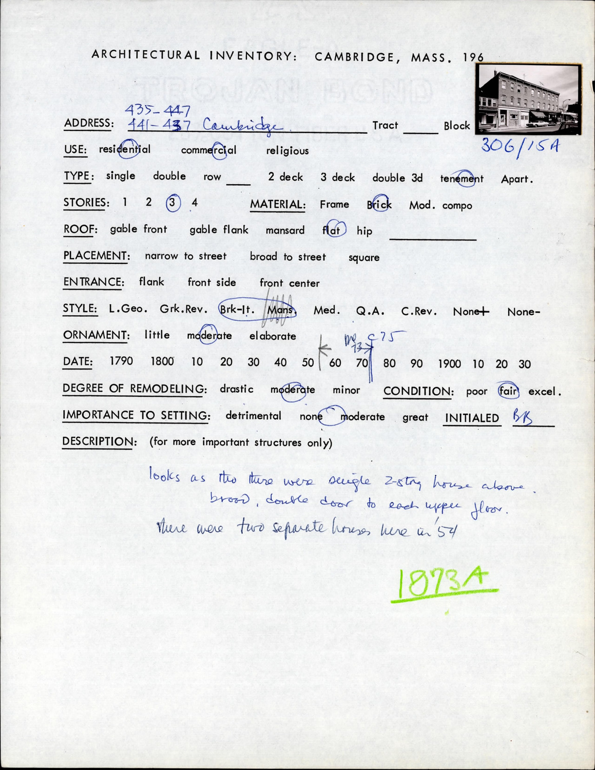 433-447 Cambridge St - Architectural Inventory Form