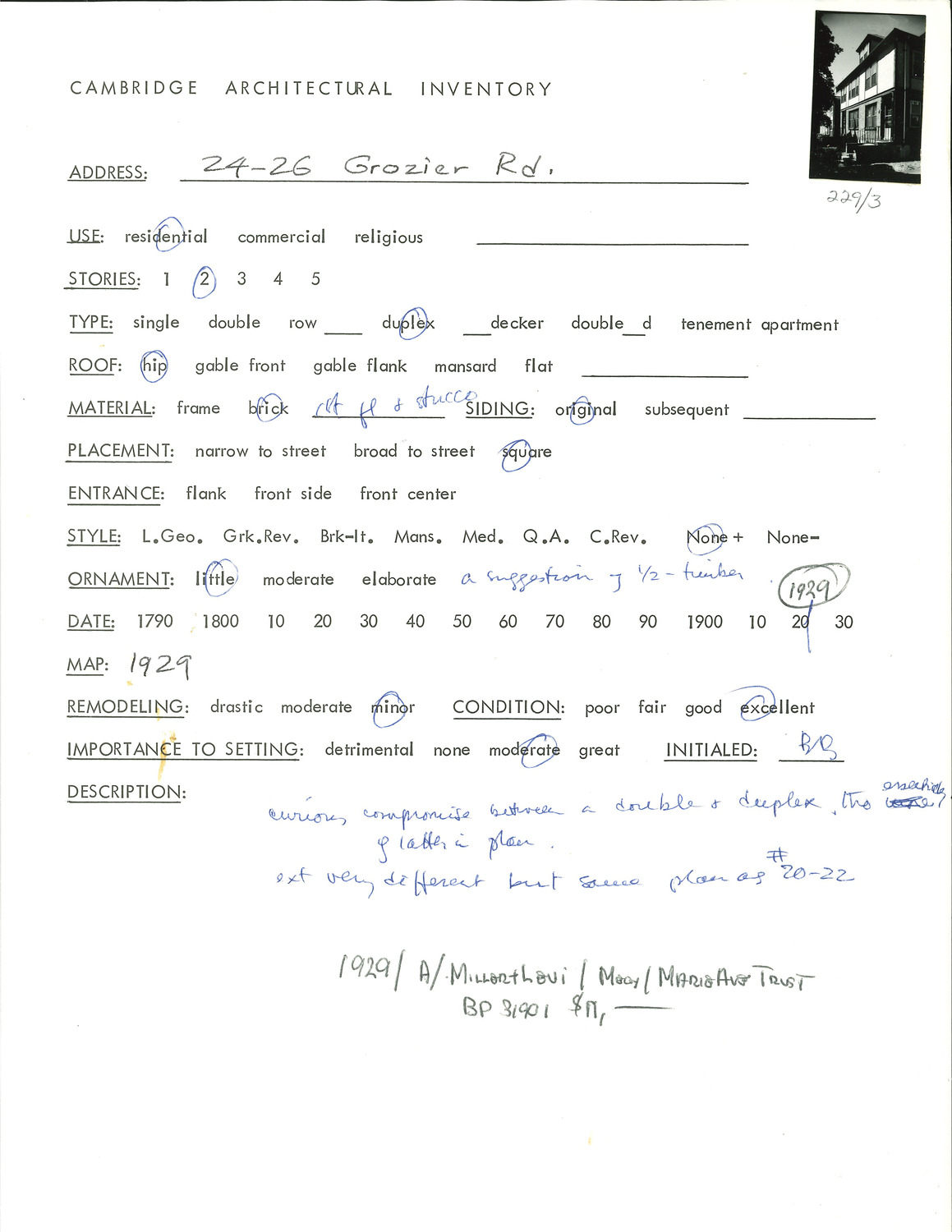 24-26 Grozier Rd - Architectural Inventory Form