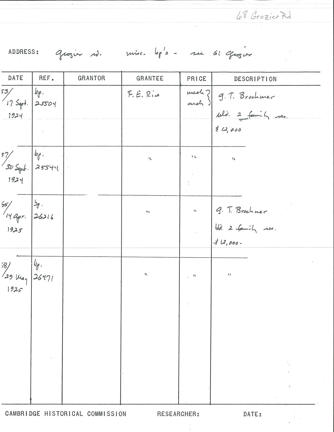 68 Grozier Rd - Research Form