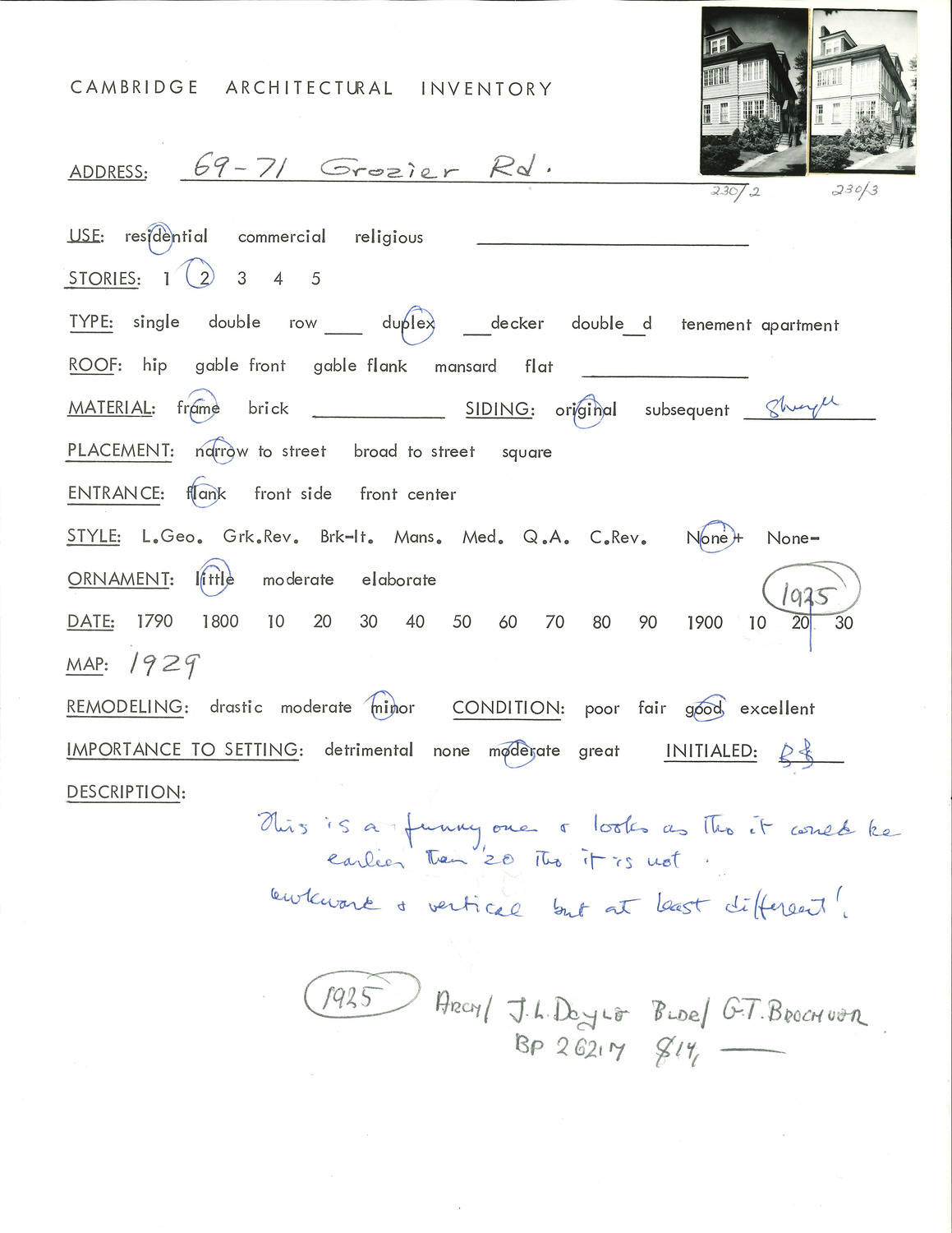 69-71 Grozier Rd - Architectural Inventory Form