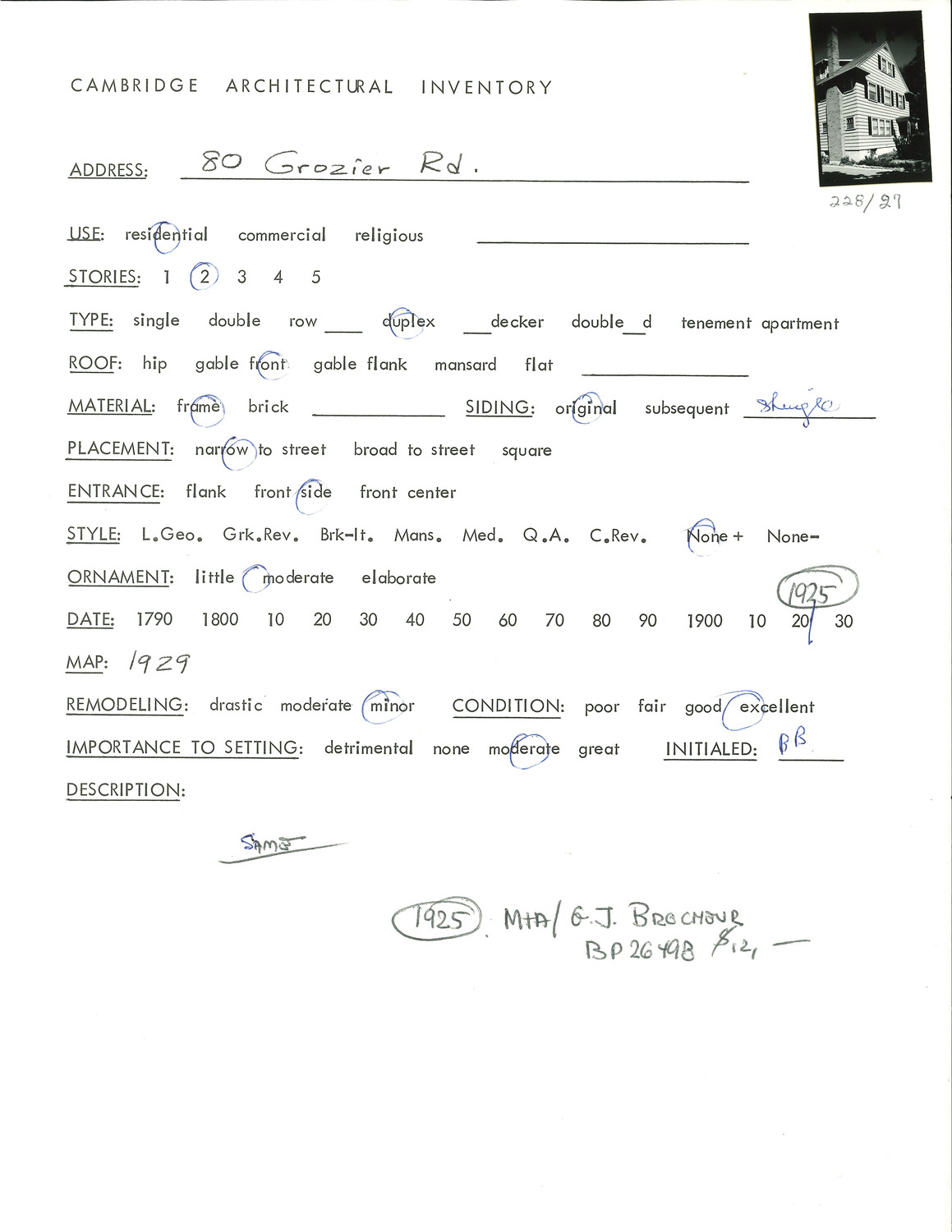 80 Grozier Rd - Architectural Inventory Form