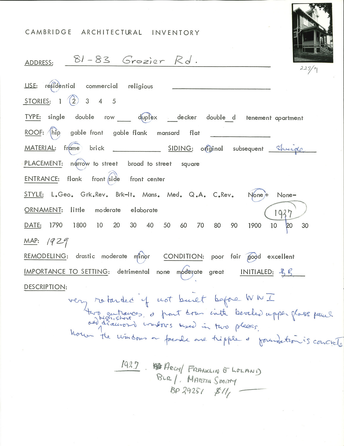 81-83 Grozier Rd - Architectural Inventory Form